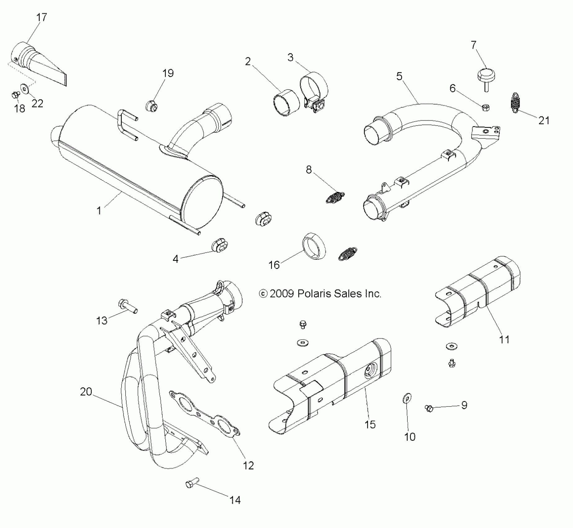 Polaris RZR "S" 800 EFI - R10VH76AB/AO/AQ/AW ENGINE, EXHAUST SYSTEM - R10VH76AB/AO/AQ/AW (49RGREXHAUST10RZRS4) Diagram