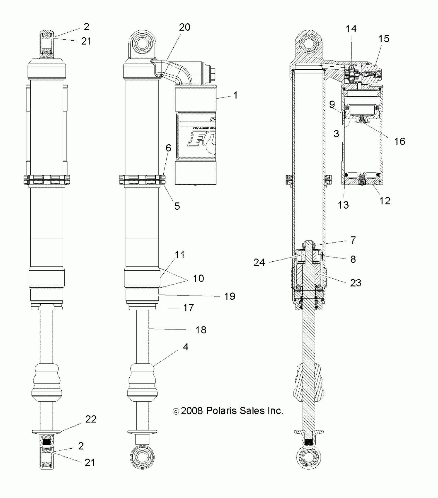 Polaris RZR "S" 800 EFI - R10VH76AB/AO/AQ/AW SUSPENSION, REAR SHOCK - R10VH76AB/AO/AQ/AW (49RGRSHOCKRR7043419) Diagram