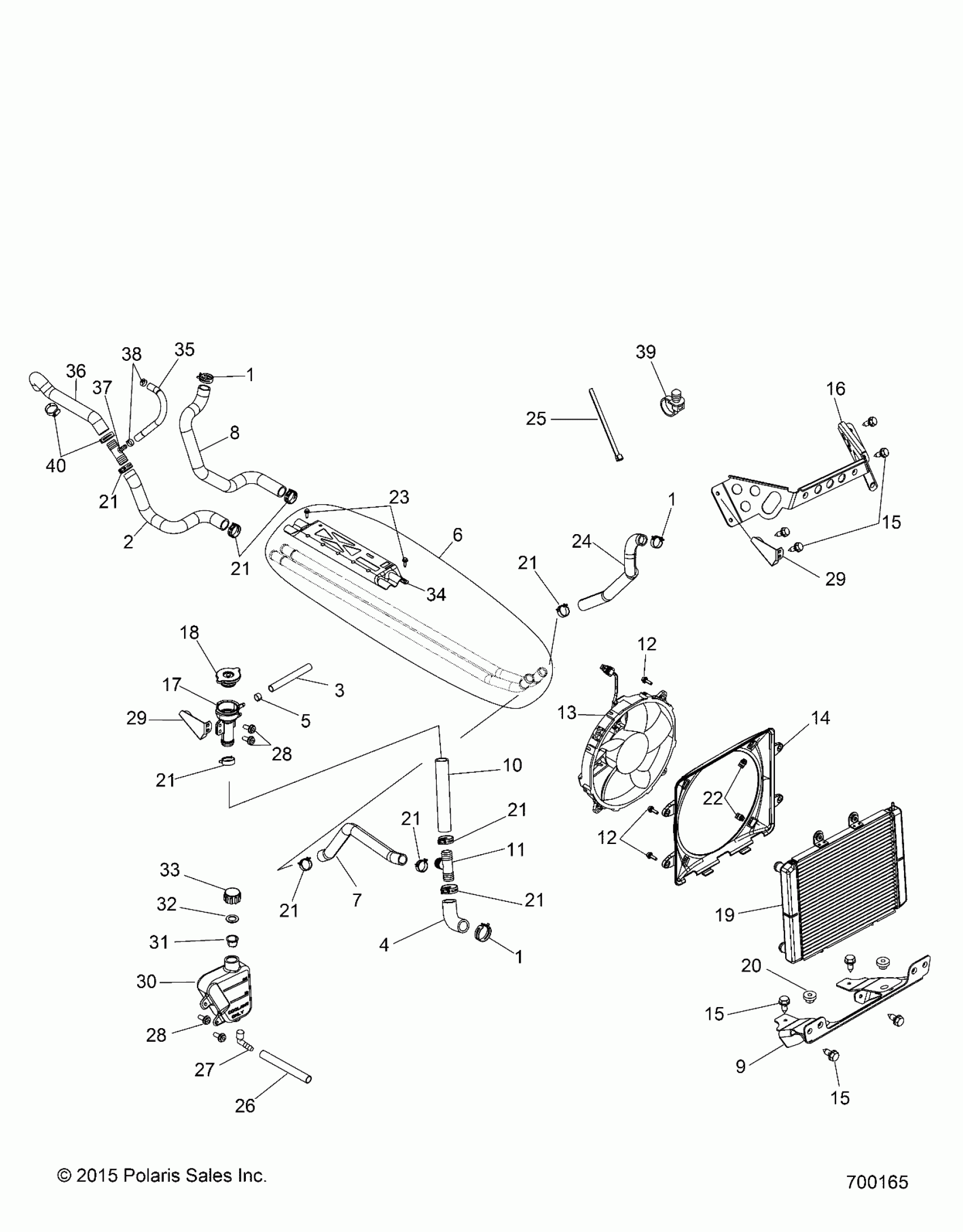 Polaris RZR S 800 EFI - R13VE76AD/AI/AW/7EAS/EAT ENGINE, COOLING SYSTEM - R13VE76AD/AI/AW/7EAS/EAT (700165) Diagram