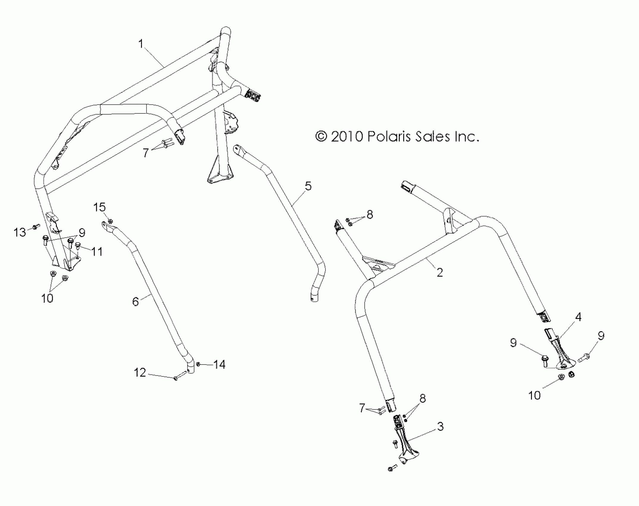 Polaris RZR S 800 - Z14VE76AD/7EAL/7EAW/7EAJ/7EAU CHASSIS, CAB FRAME and SIDE BARS - Z14VE76AD/7EAL/7EAW/EAJ/EAU (49RGRCAB11RZRS) Diagram