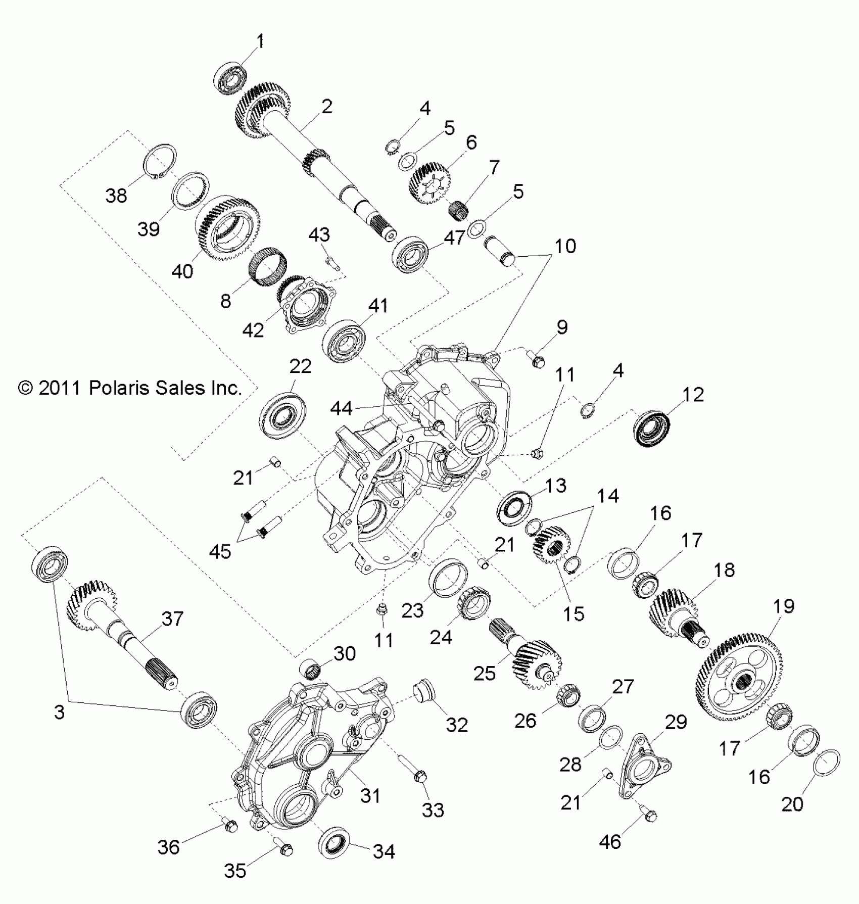 Polaris RZR S 800 - Z14VE76AD/7EAL/7EAW/7EAJ/7EAU DRIVE TRAIN, MAIN GEARCASE INTERNALS 1 - Z14VE76AD/7EAL/7EAW/EAJ/EAU (49RGRTRANSINTL12RZR) Diagram