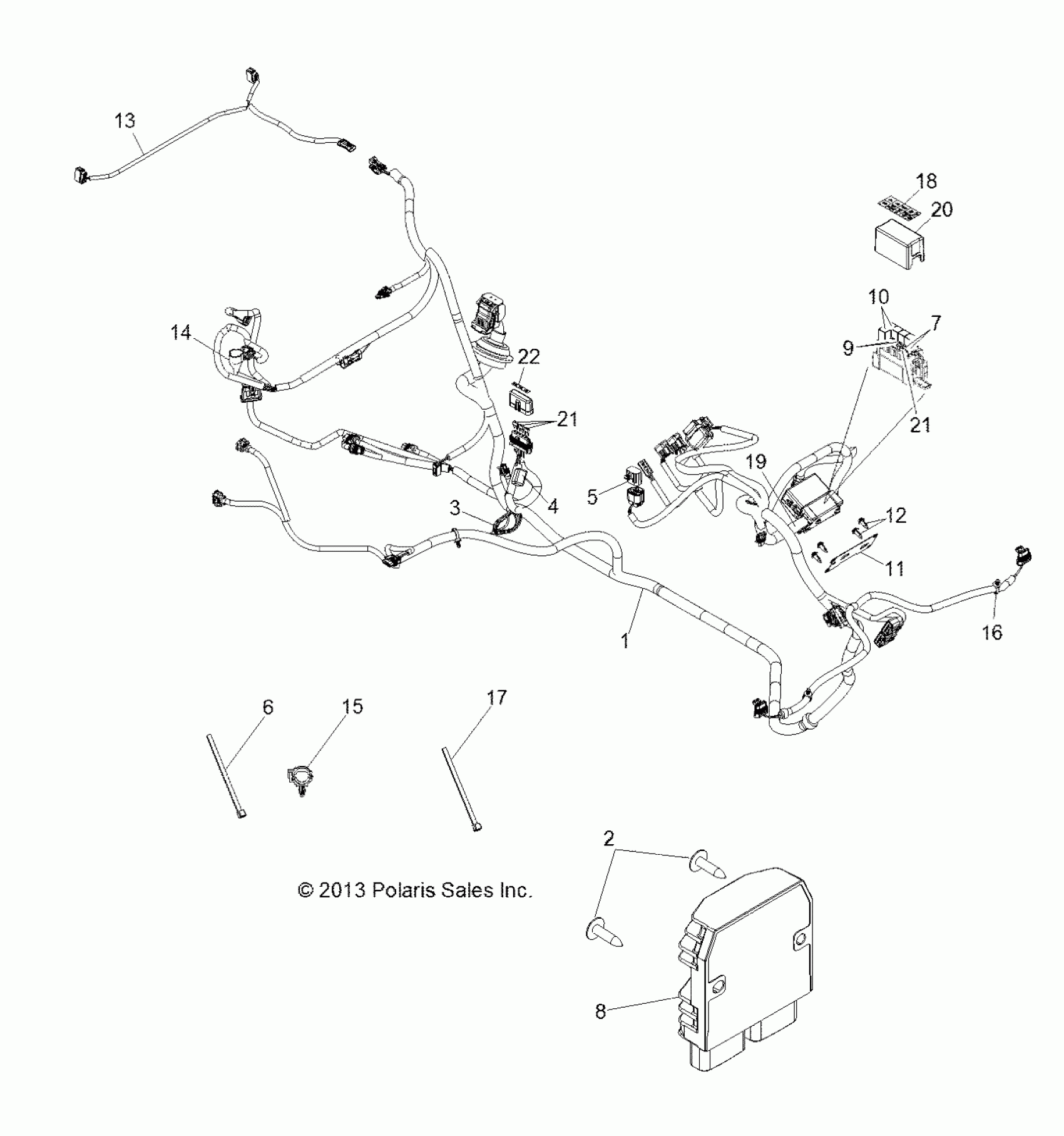 Polaris RZR S 800 - Z14VE76AD/7EAL/7EAW/7EAJ/7EAU ELECTRICAL, WIRE HARNESS - Z14VE76AD (49RGRHARNESS13RZRS) Diagram