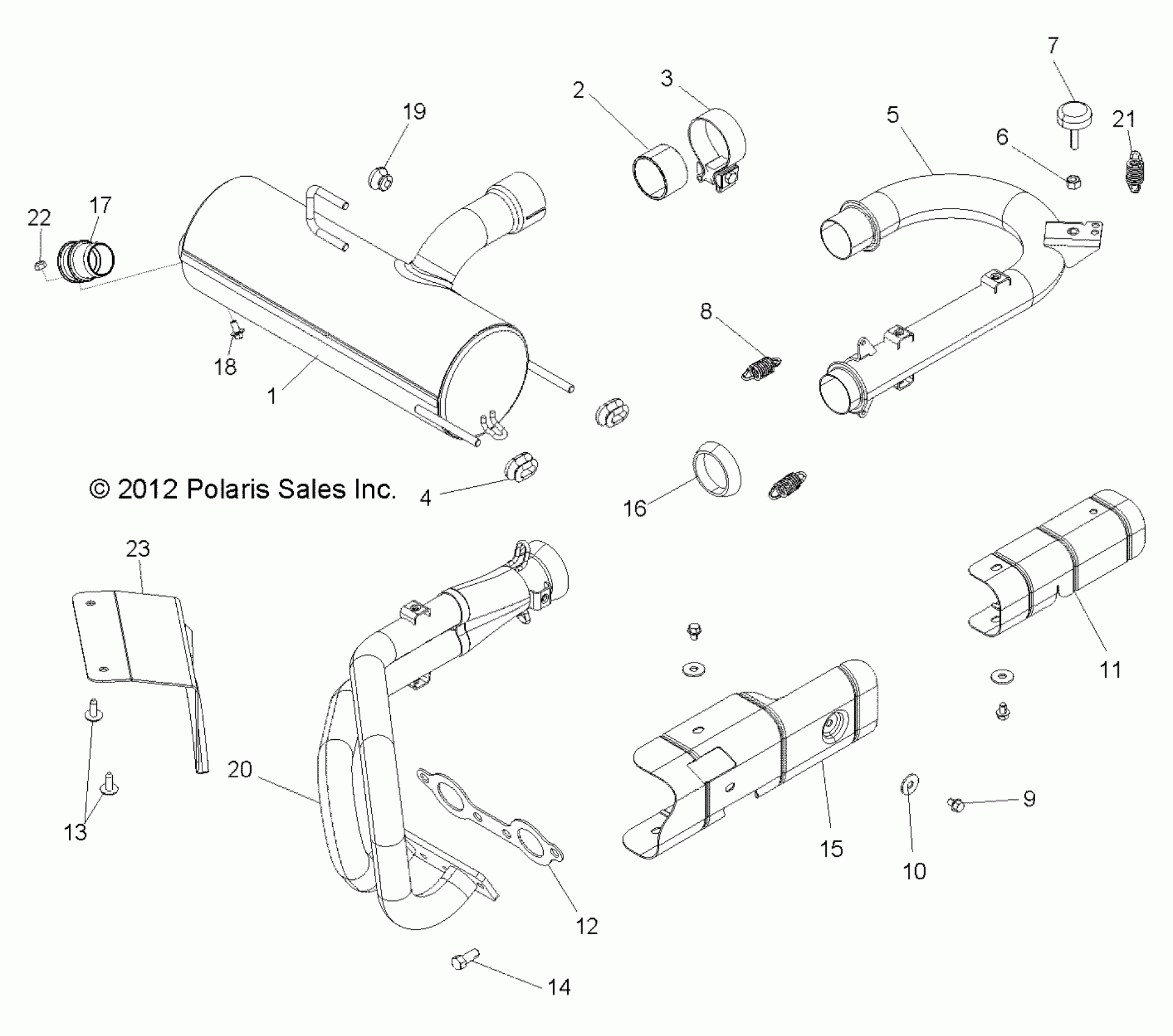 Polaris RZR S 800 - Z14VE76AD/7EAL/7EAW/7EAJ/7EAU ENGINE, EXHAUST SYSTEM - Z14VE76AD/7EAL/7EAW/EAJ/EAU (49RGREXHAUST13RZRS) Diagram