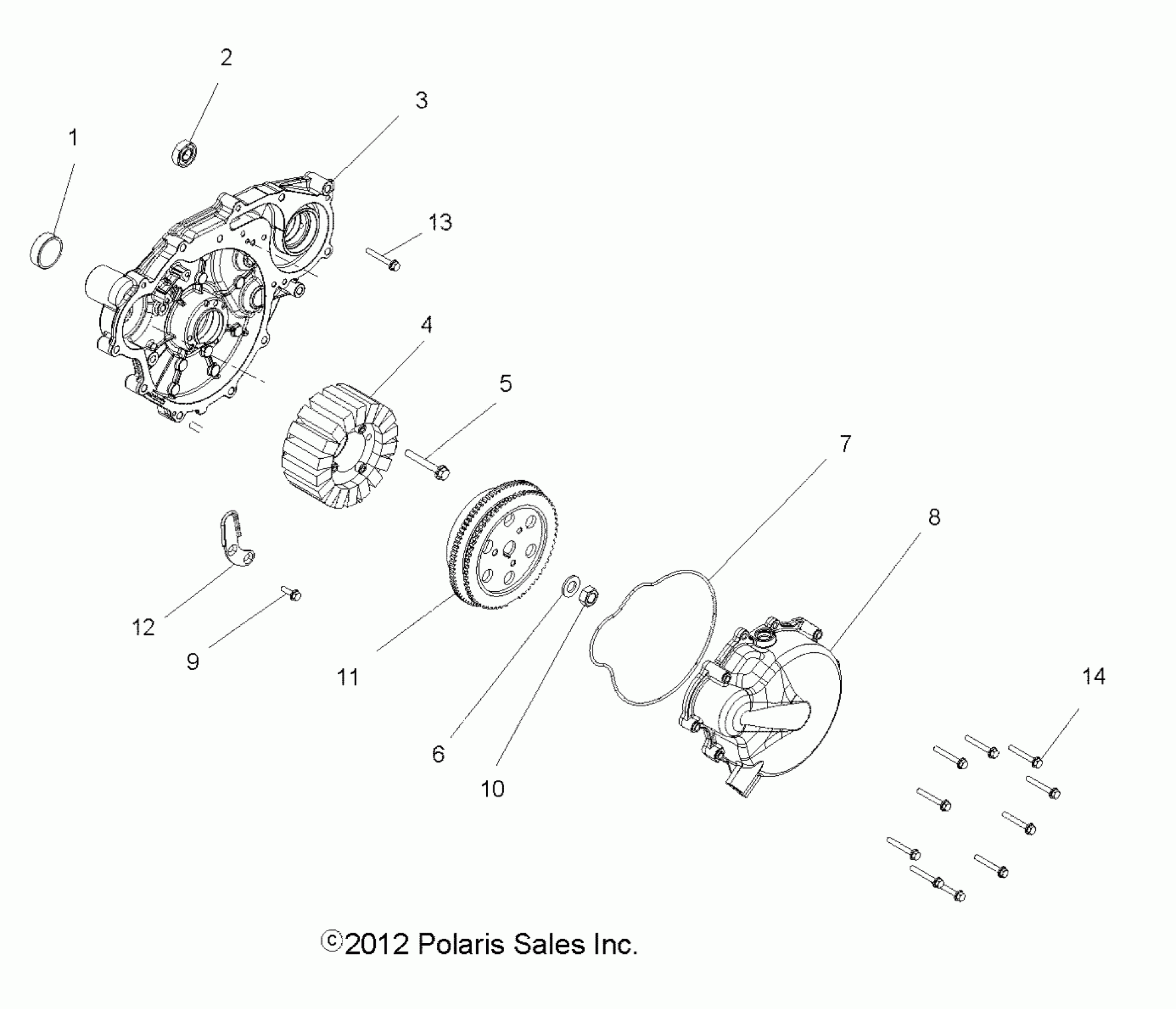 Polaris RZR S 800 - Z14VE76AD/7EAL/7EAW/7EAJ/7EAU ENGINE, STATOR and FLYWHEEL - Z14VE76AD/7EAL/7EAW/EAJ/EAU (49RGRSTATOR136X6) Diagram