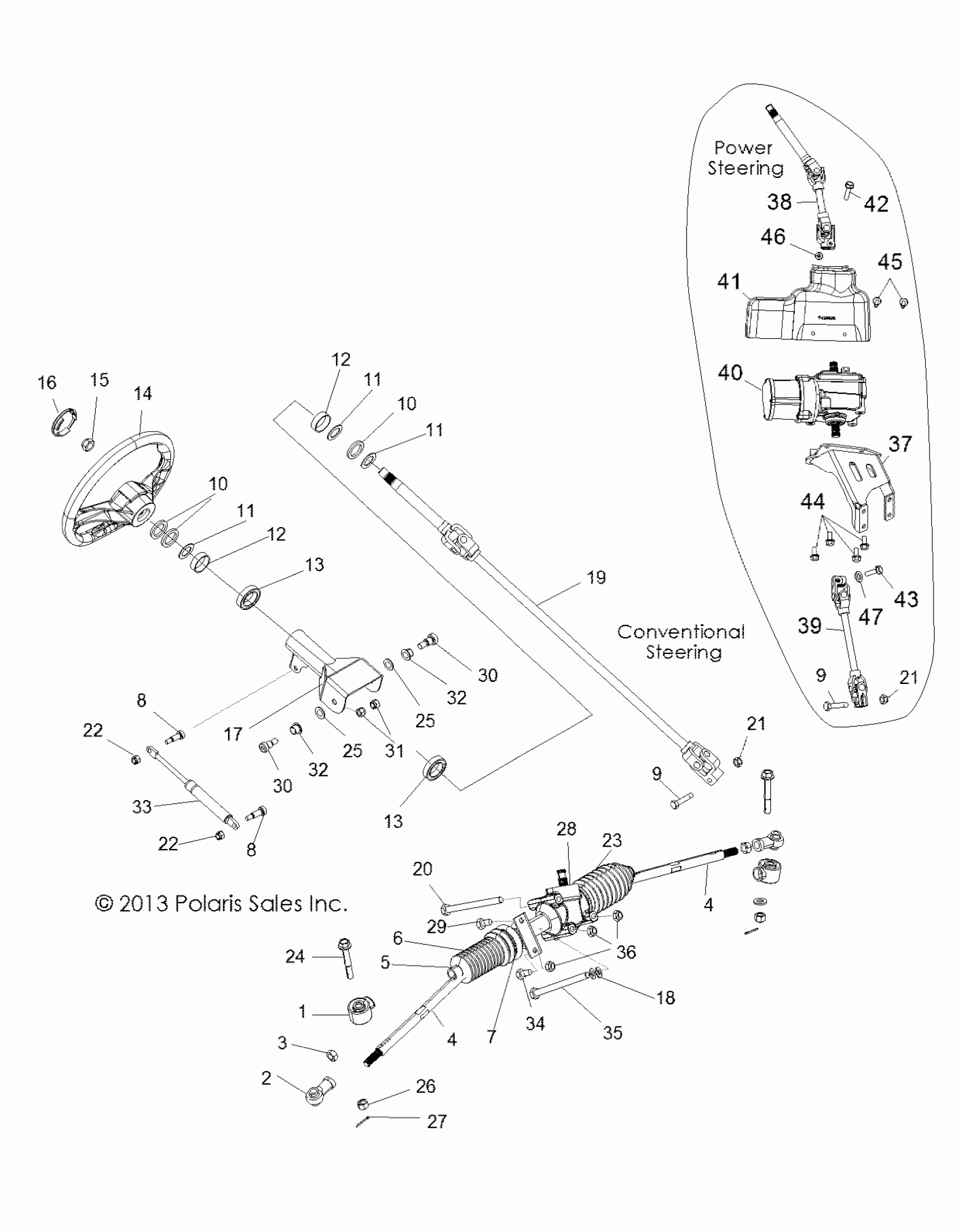 Polaris RZR S 800 - Z14VE76AD/7EAL/7EAW/7EAJ/7EAU STEERING, STEERING ASM. - Z14VE76AD/7EAL/7EAW/EAJ/EAU (49RGRSTEERING13RZRS) Diagram