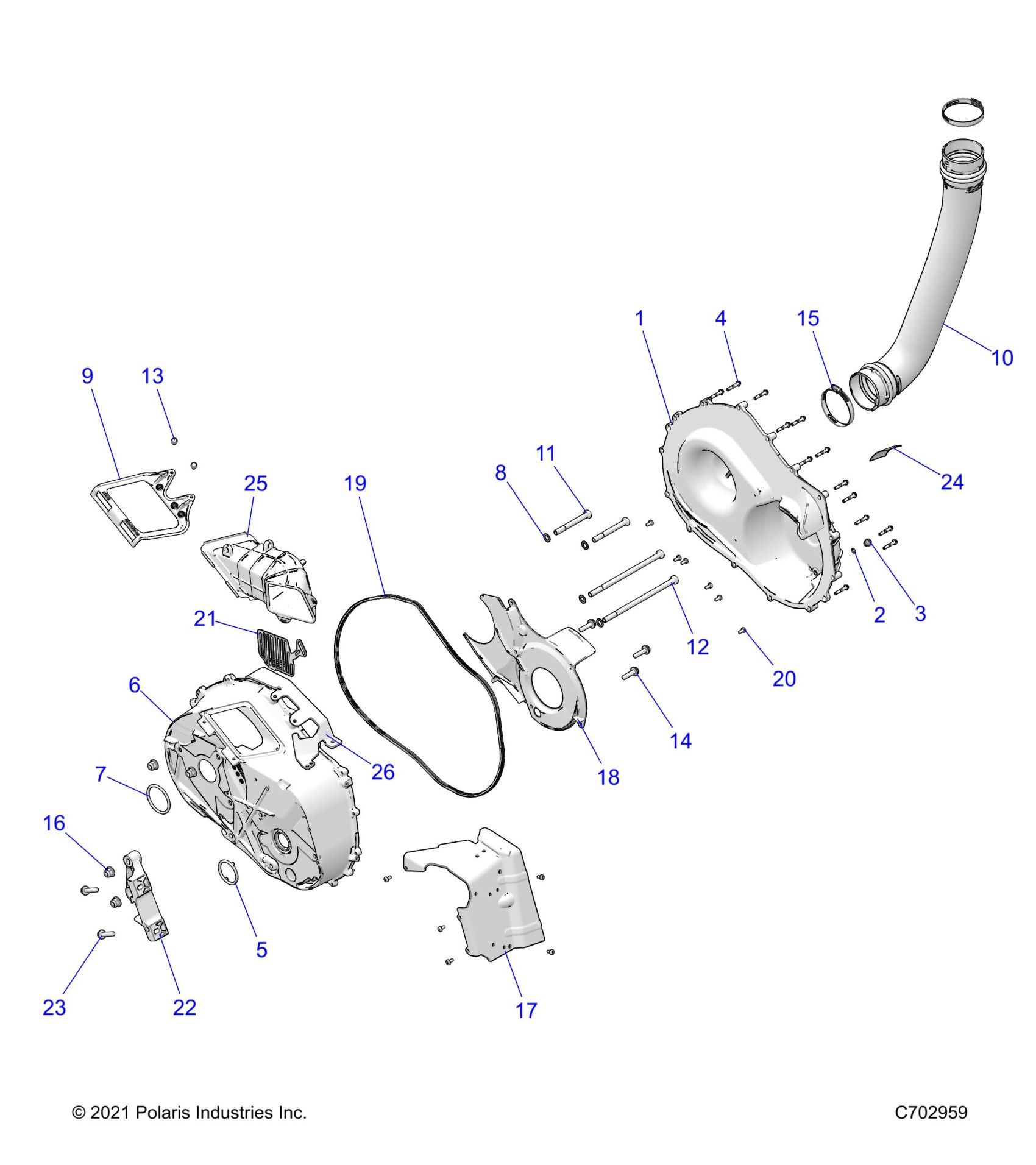 Polaris RZR TURBO R SPORT (R02) - Z23GAE92AL/92BL DRIVE TRAIN, CLUTCH COVER AND DUCTING - Z23GAE92A/92B (C702959) Diagram