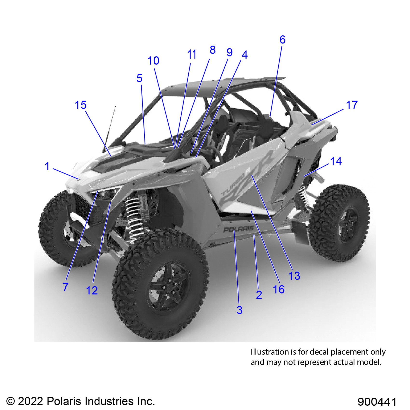 Polaris RZR TURBO R ULTIMATE (R04) - Z22GAL92AG/AL/BG/BL BODY, DECALS, STANDARD - Z22GAL92AG/AL/BG/BL (900423) Diagram