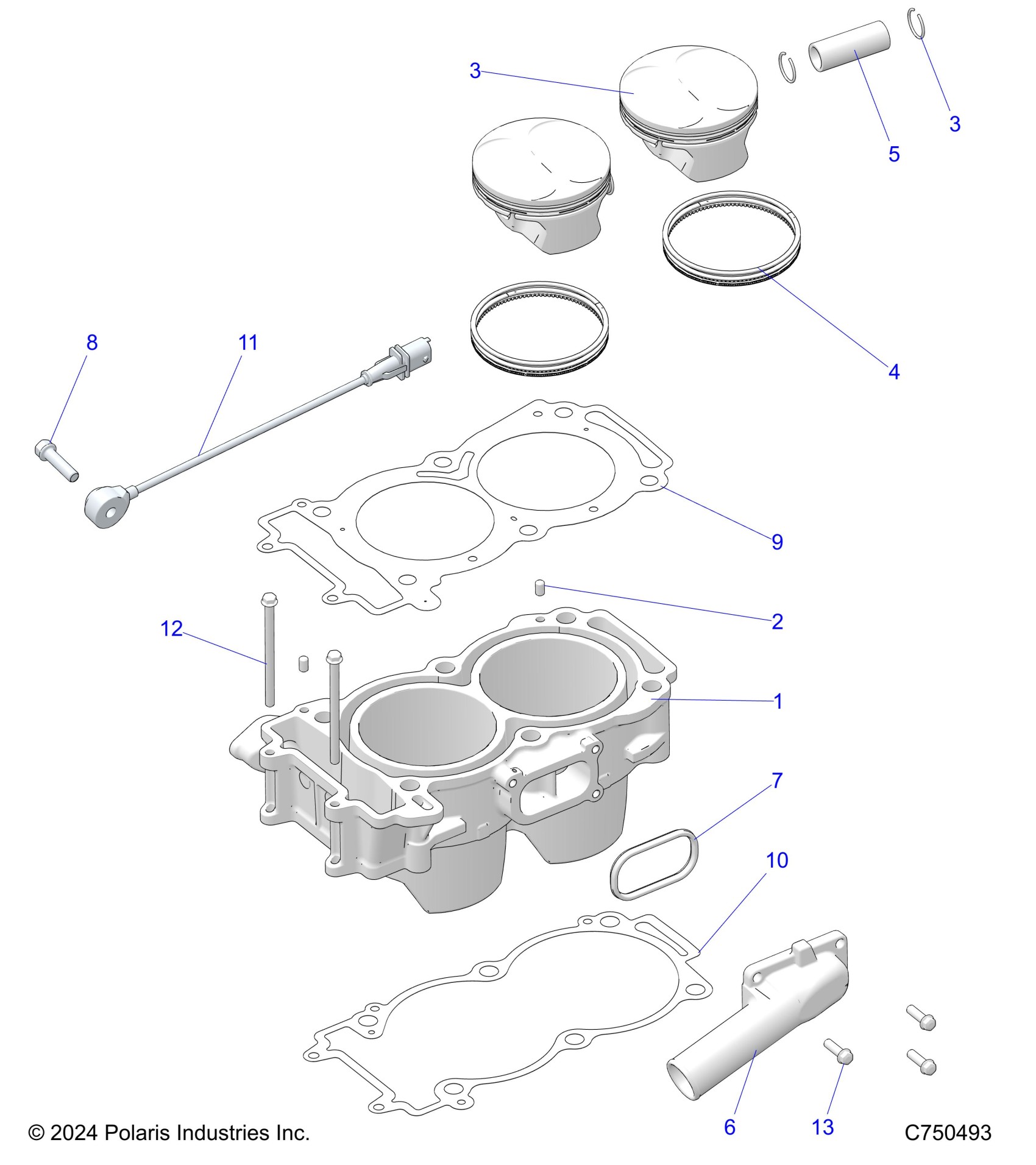 Polaris RZR XP 1000 PREMIUM (R02) - Z25NEB99A4/B4 ENGINE, CYLINDER AND PISTON - Z25NEB99A4/B4 (C730493) Diagram
