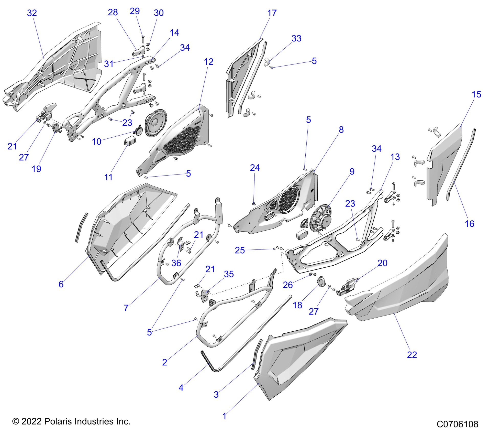 Polaris RZR XP 1000 PREMIUM RIDE COMMAND (R04) - Z23NAK99AL/99BL/AR/BR BODY, DOORS - Z23NAK99A/99B (C0706108) Diagram