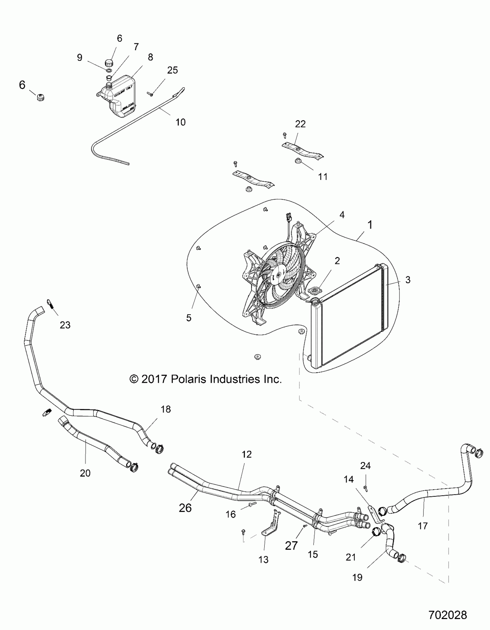 Polaris RZR XP 1000 (R08) - Z18VDE99AK/AW/AJ/BJ/BK/BW/LW/KAK/BK/MAL/RAL/BL ENGINE, COOLING SYSTEM - Z18VDE99AK/AW/AJ/BJ/BK/BW/LW/K99AK/BK/M99AL/R99AL/BL (702028) Diagram