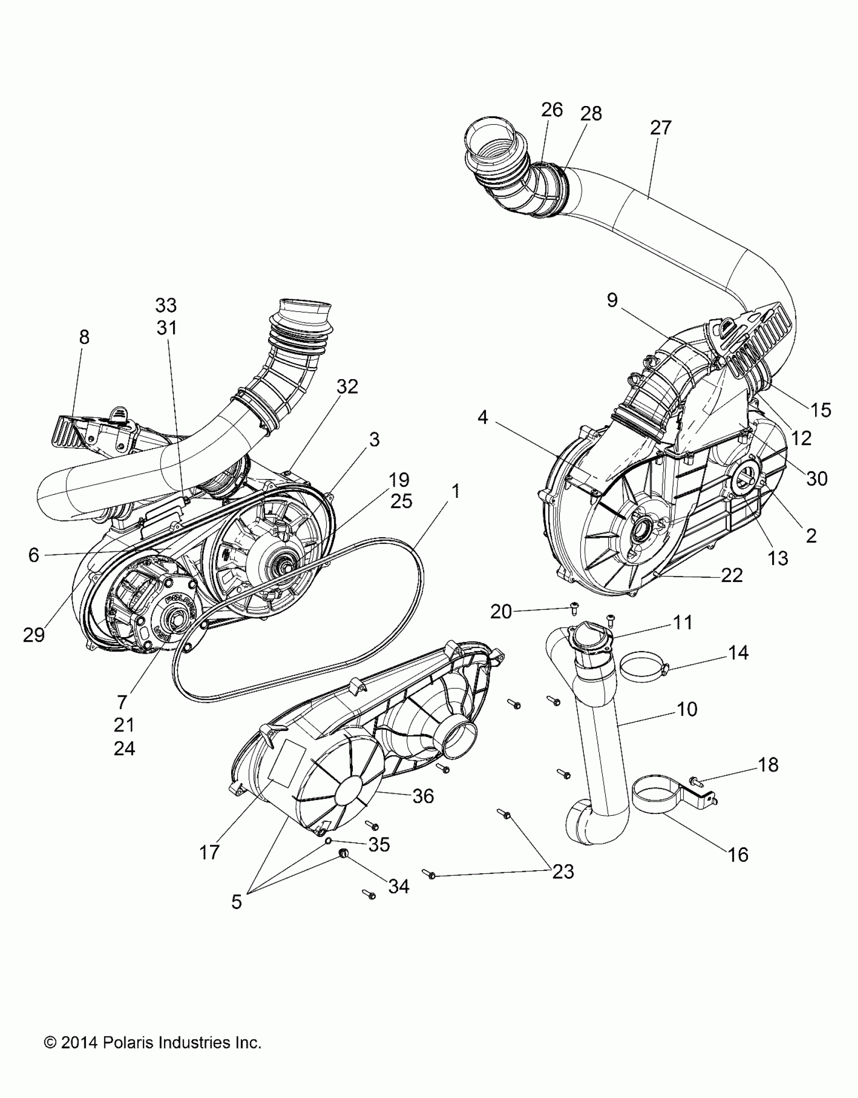 Polaris RZR XP 1000 (R12) - Z16VDE99AF/AM/LM/M99AM DRIVE TRAIN, CLUTCH COVER AND DUCTING - Z16VDE99AF/AM/LM/AS (49RGRCLUTCHCVR151000) Diagram