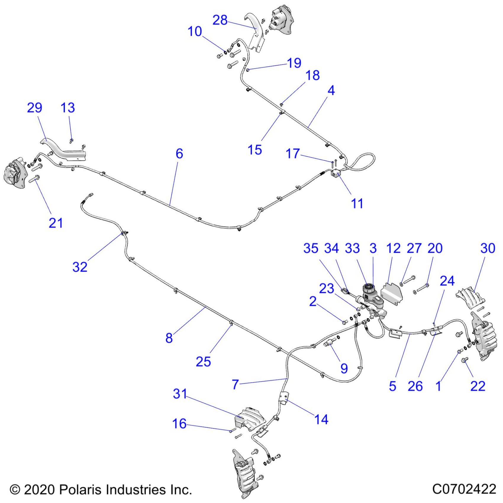 Polaris RZR XP 1000 SPORT (R05) - Z23NAE99AL/99BL/AR/BR BRAKES, BRAKE LINES AND MASTER CYLINDER - Z23NAE99A/99B (C0702422) Diagram