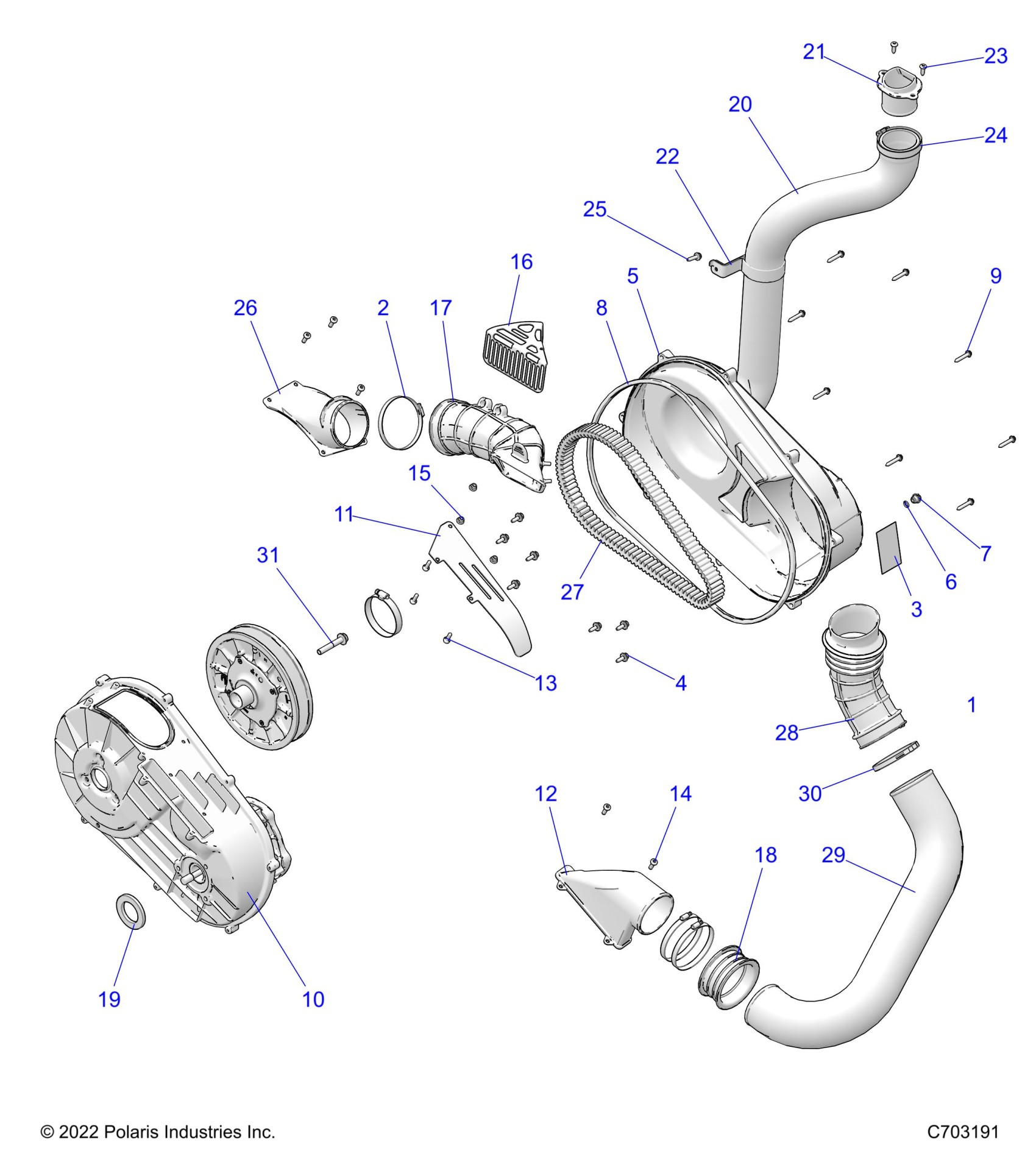Polaris RZR XP 1000 SPORT (R05) - Z23NAE99AL/99BL/AR/BR DRIVE TRAIN, CLUTCH COVER AND DUCTING - Z23NAE99A/99B (C703191) Diagram