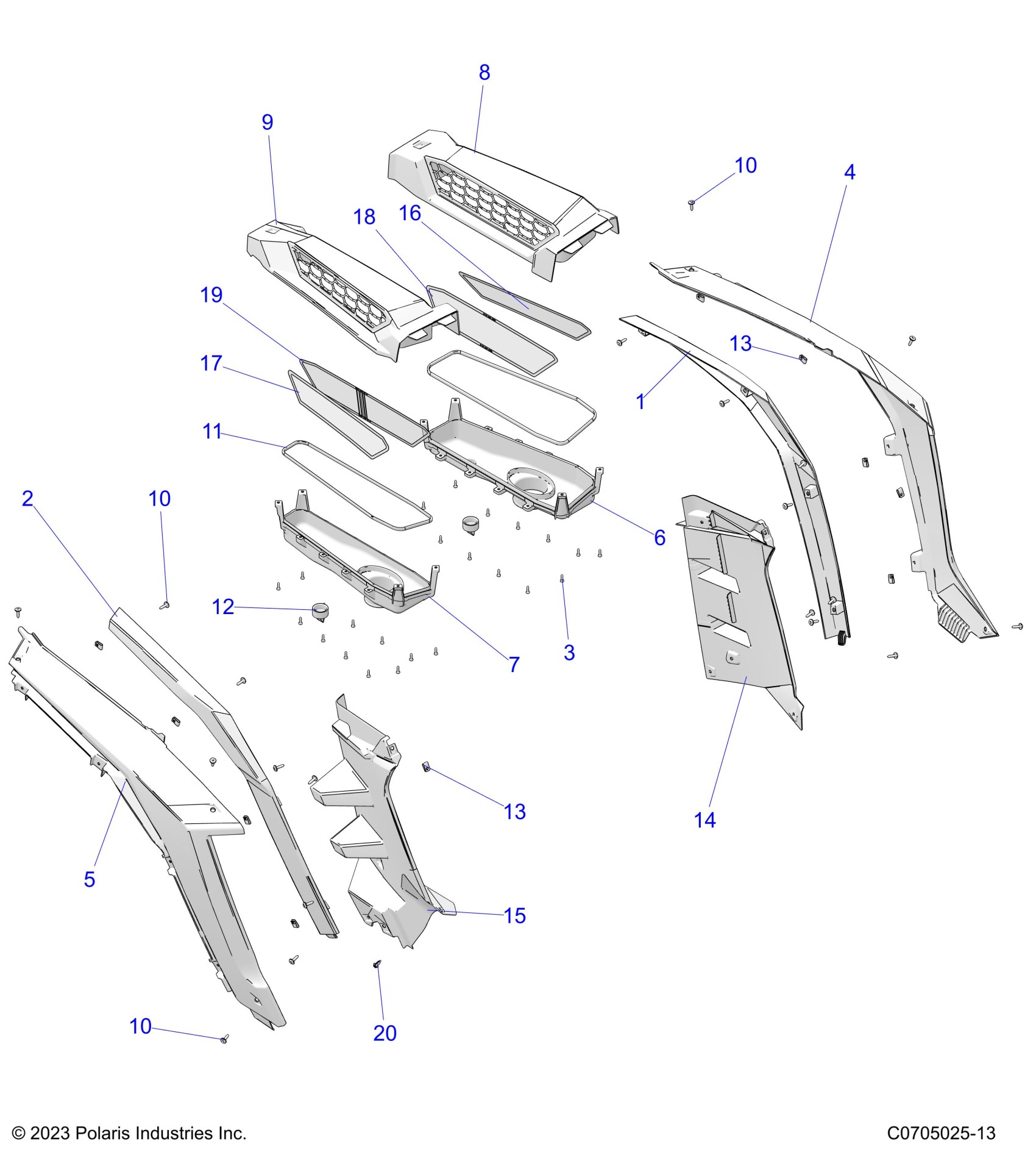 Polaris RZR XP 1000 ULTIMATE (R02) - Z25NEF99A4/A5/A5/B5 BODY, REAR FENDERS AND BEZELS - Z25NEF99A4/B4/A5/B5 (C0705025-13) Diagram