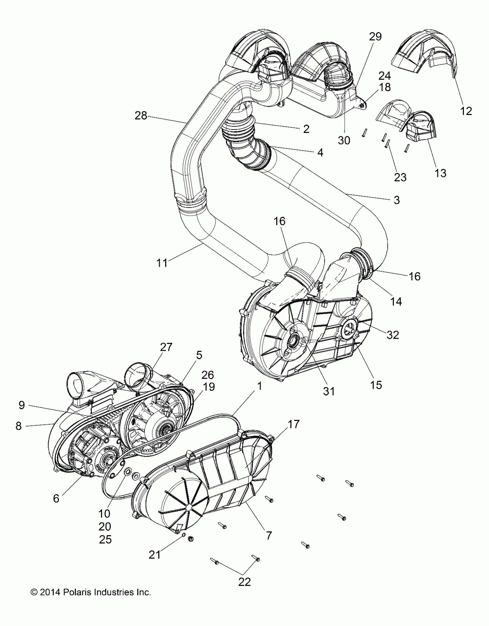 Polaris RZR XP 1000 - Z15VDE99AT/AL/AV/AW/LP/EW/AO/AP/AZ/NV/NW/K99AA/AU DRIVE TRAIN, CLUTCH COVER AND DUCTING - Z15VDE99AL (49RGRCLUTCHCVR151000AL) Diagram