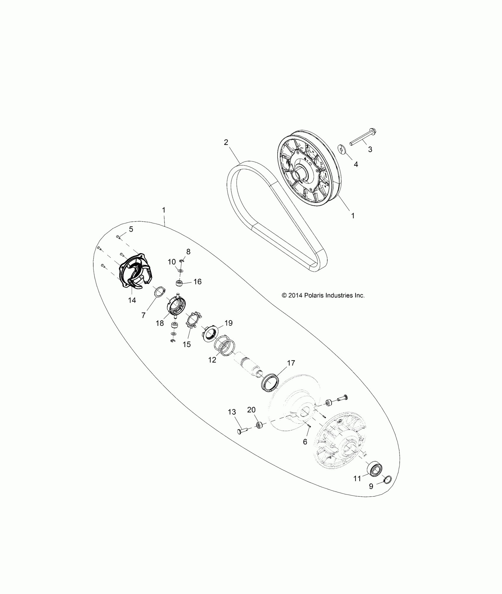 Polaris RZR XP 1000 - Z15VDE99AT/AL/AV/AW/LP/EW/AO/AP/AZ/NV/NW/K99AA/AU DRIVE TRAIN, SECONDARY CLUTCH - Z15VDE99AT/AL/AV/AW/LP/EW/AO/AP/AZ/NV/NW/K99AA/AU (49RGRCLUTCHDVN151000) Diagram