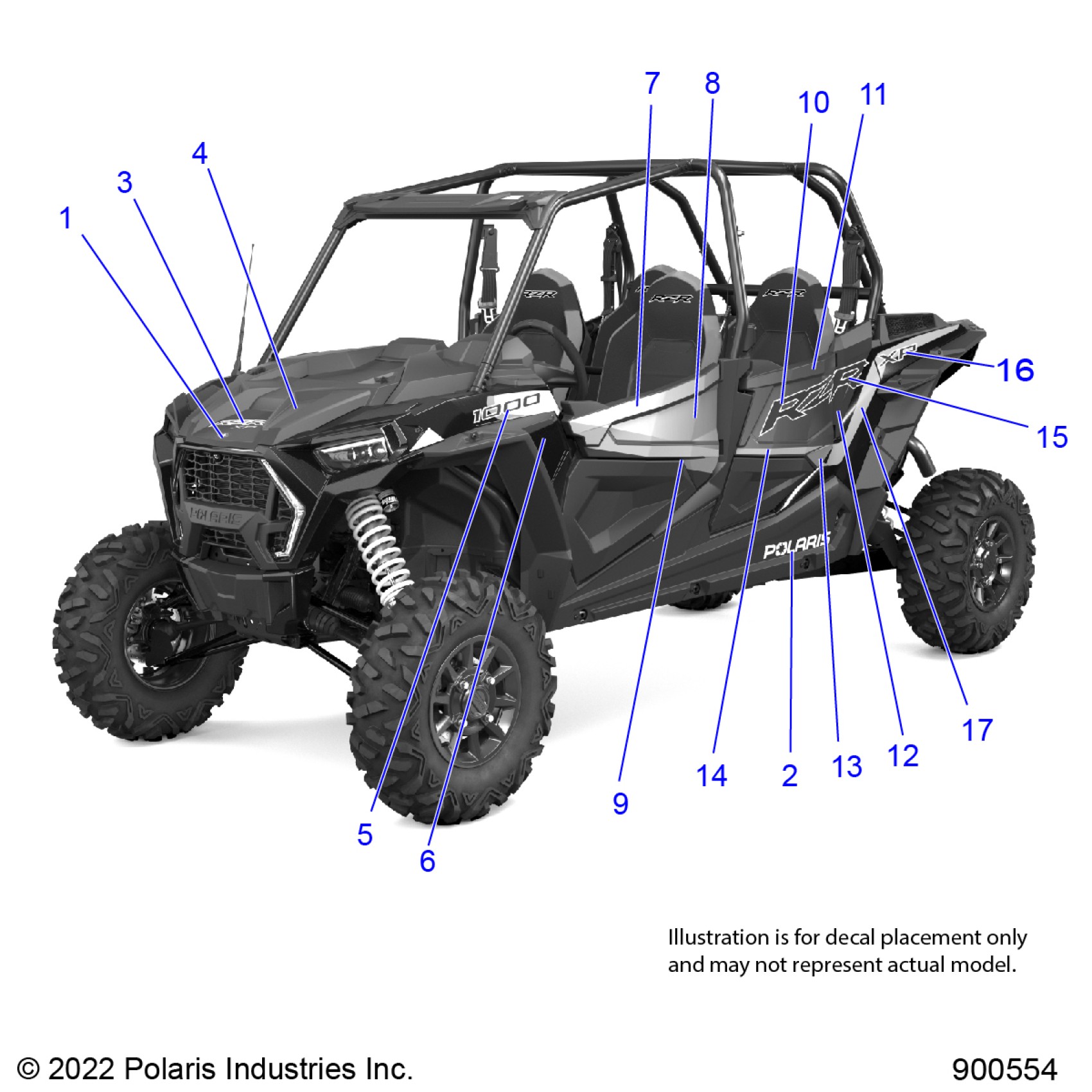 Polaris RZR XP 4 1000 PREMIUM (R01) - Z23N4V99AL/BL/AR/BR BODY, DECALS - Z23N4V99AL/BL (900554-01) Diagram