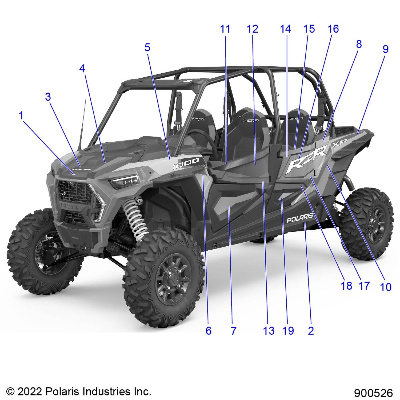 Polaris RZR XP 4 1000 PREMIUM RIDE COMMAND (R02) - Z23N4K99AR/99BR/AL/BR BODY, DECALS, GRAPHICS - Z23N4K99AR/BR (900526) Diagram