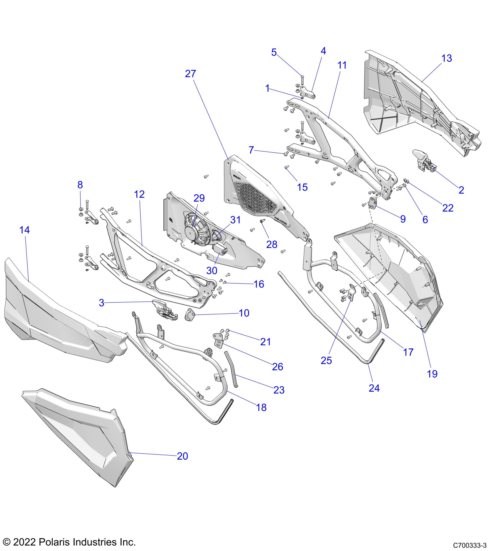 Polaris RZR XP 4 1000 PREMIUM RIDE COMMAND (R02) - Z23N4K99AR/99BR/AL/BR BODY, DOORS, FRONT - Z23N4K99A/99B (C700333-1) Diagram