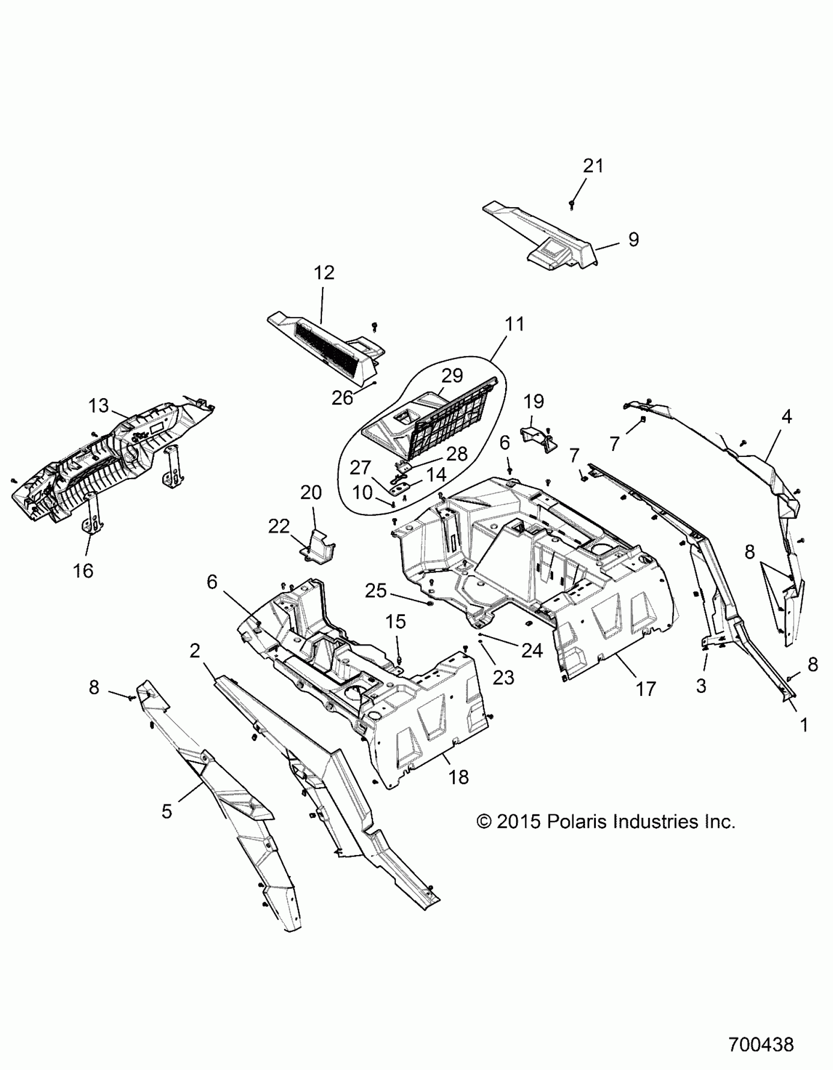 Polaris RZR XP 4 TURBO (R11) - Z16VFE92AE/AH/AS/AW BODY, REAR RACK AND FENDERS - Z16VFE92AE/AH/AS/AW (700438) Diagram