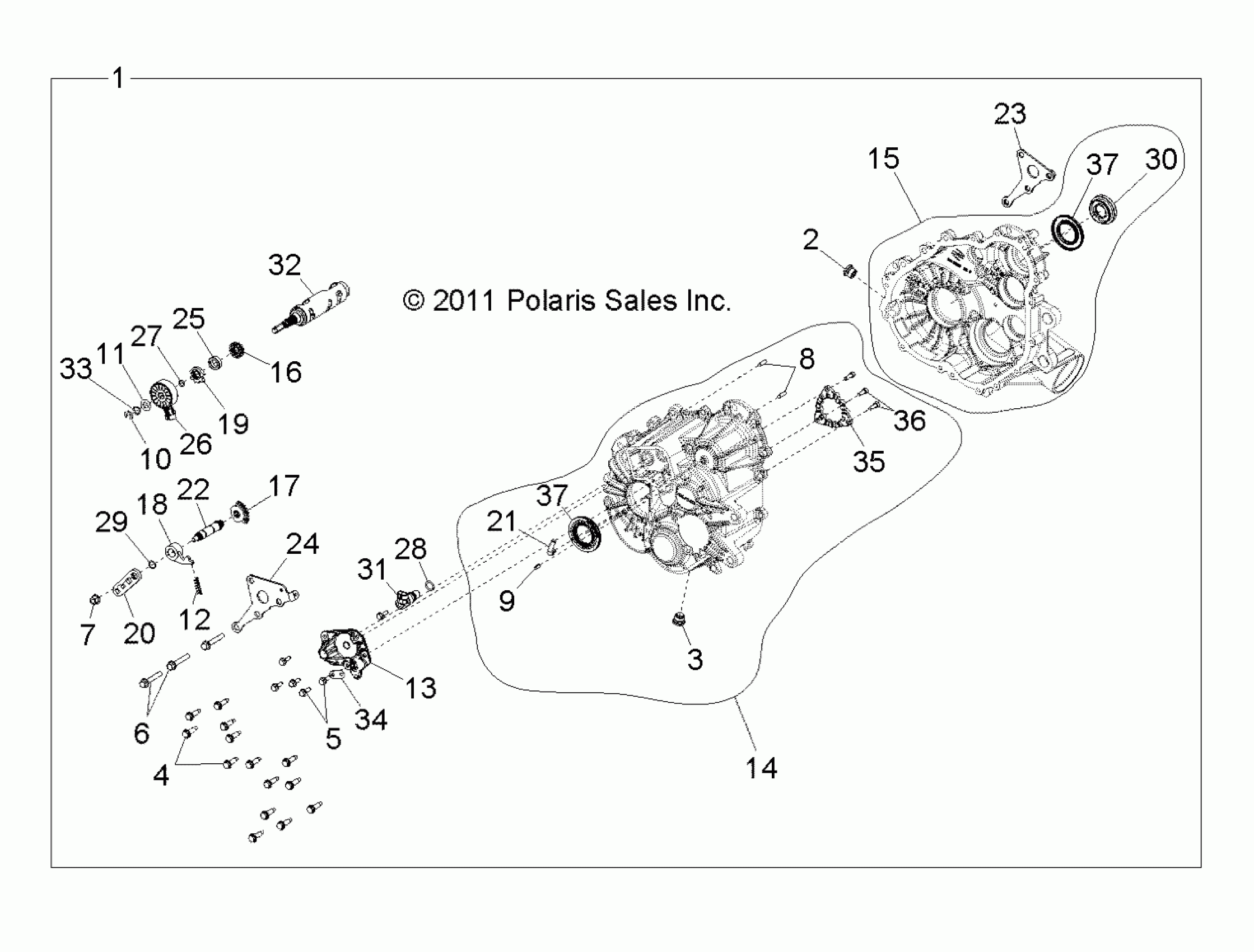 Polaris RZR XP 900 - R11JH87AA/AD DRIVE TRAIN, MAIN GEARCASE - R11JH87AA/AD (49RGRTRANS1332823) Diagram