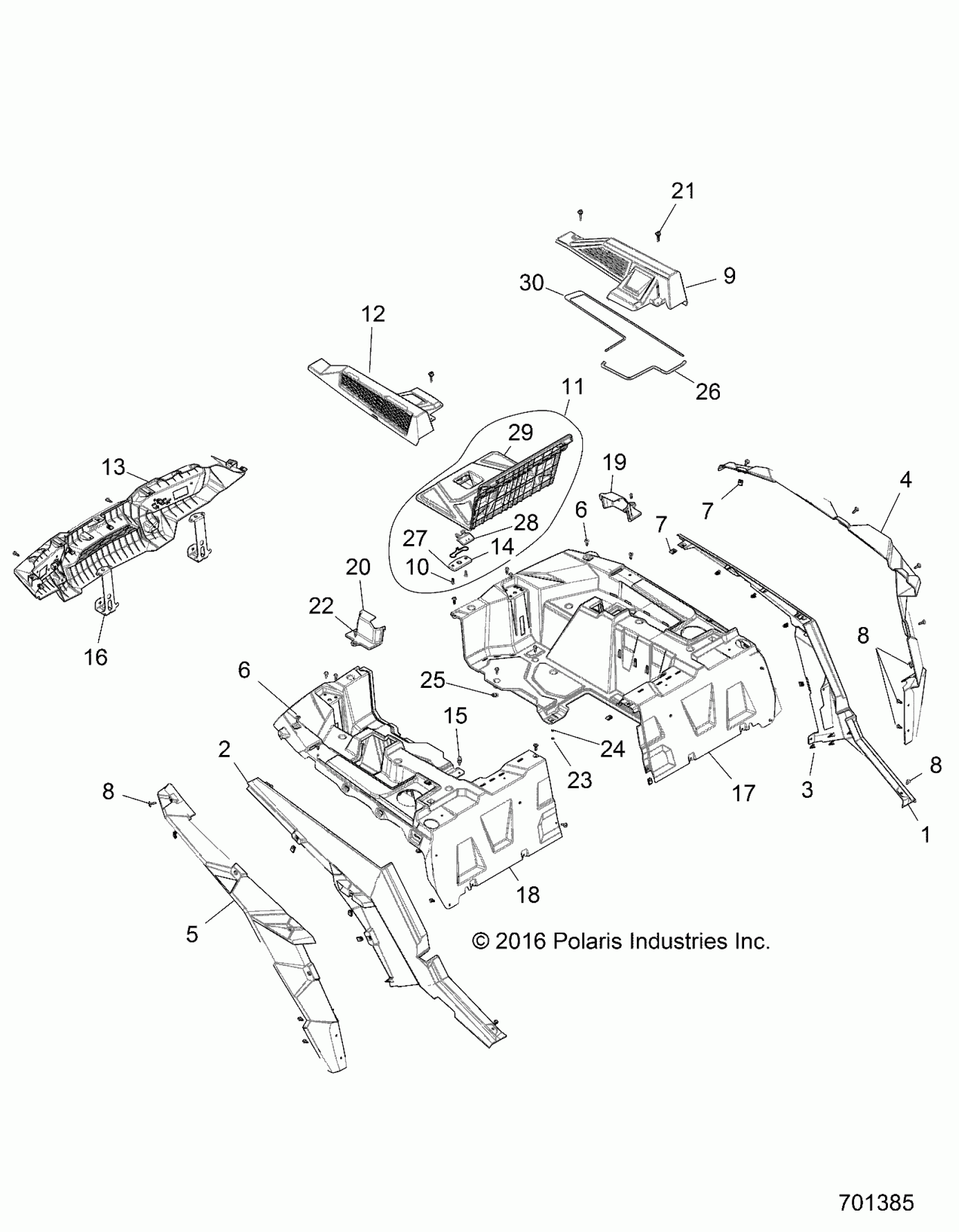Polaris RZR XP TURBO (R07) - Z17VDE92AK/AM/LK/AB BODY, REAR RACK AND FENDERS - Z17VDE92AK/AM/LK/AB (701385) Diagram