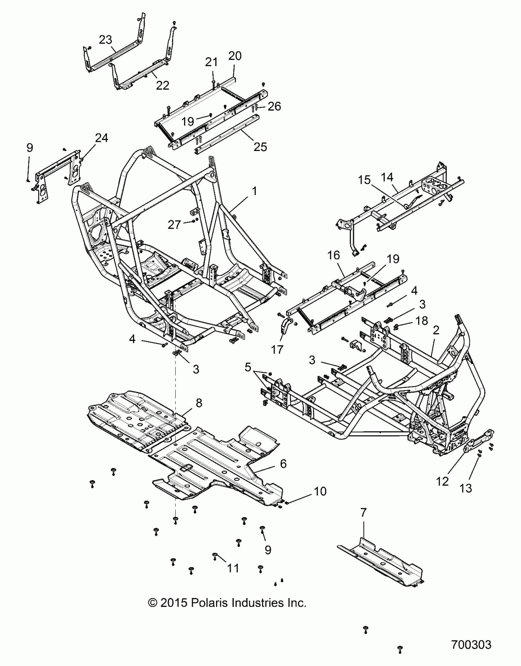 Polaris RZR XP4 TURBO (R06) - Z17VFE92AK/AM/AB CHASSIS, MAIN FRAME AND SKID PLATES - Z17VFE92AK/AM/AB (700303) Diagram