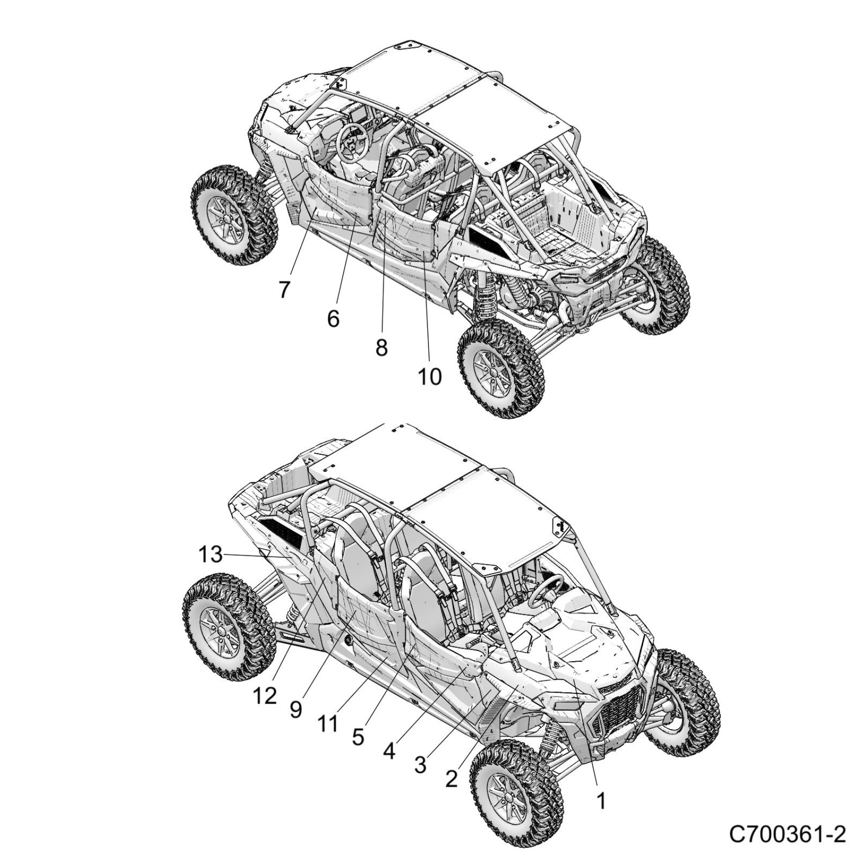 Polaris RZR XP4 TURBO S (R10) - Z19VPL92AK/BK/AR/BR/AM/BM BODY, DECALS GRAPHICS - Z19VPL92AK/BK/AR/BR/AM/BM (C700361-2) Diagram