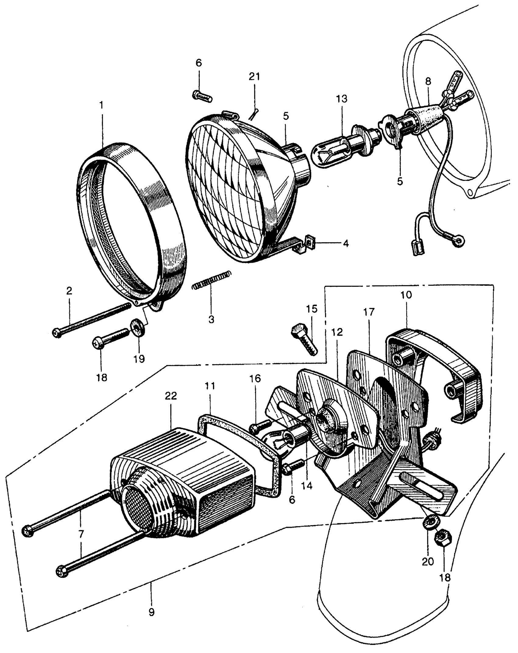 Honda S65A MOTORCYCLE, JPN, VIN# S65-A000001 HEADLIGHT + TAILLIGHT Diagram