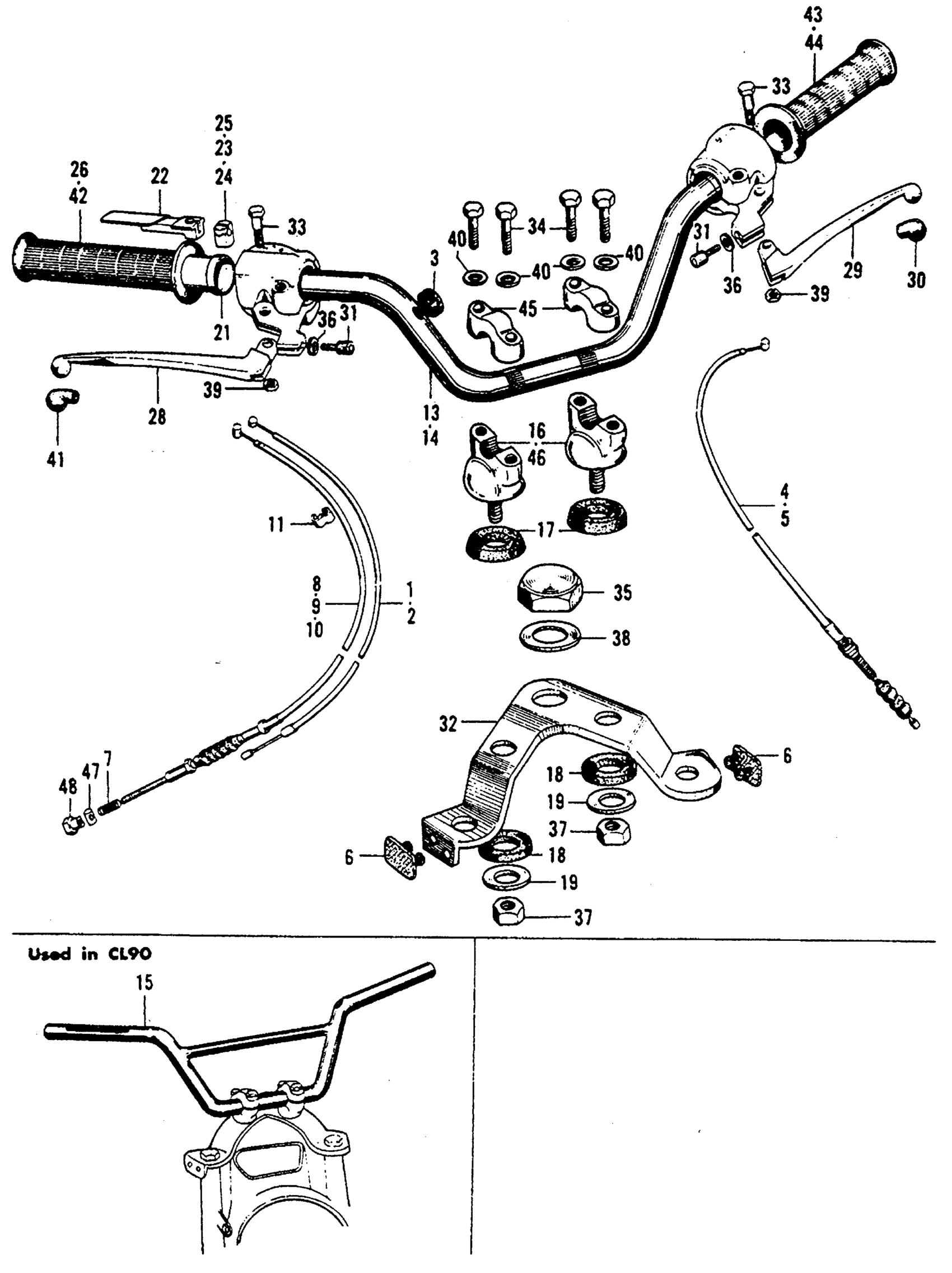 Honda S90A MOTORCYCLE, JPN, VIN# S90-111565 TO S90-142498 HANDLEBAR + FORK TOP BRIDGE Diagram