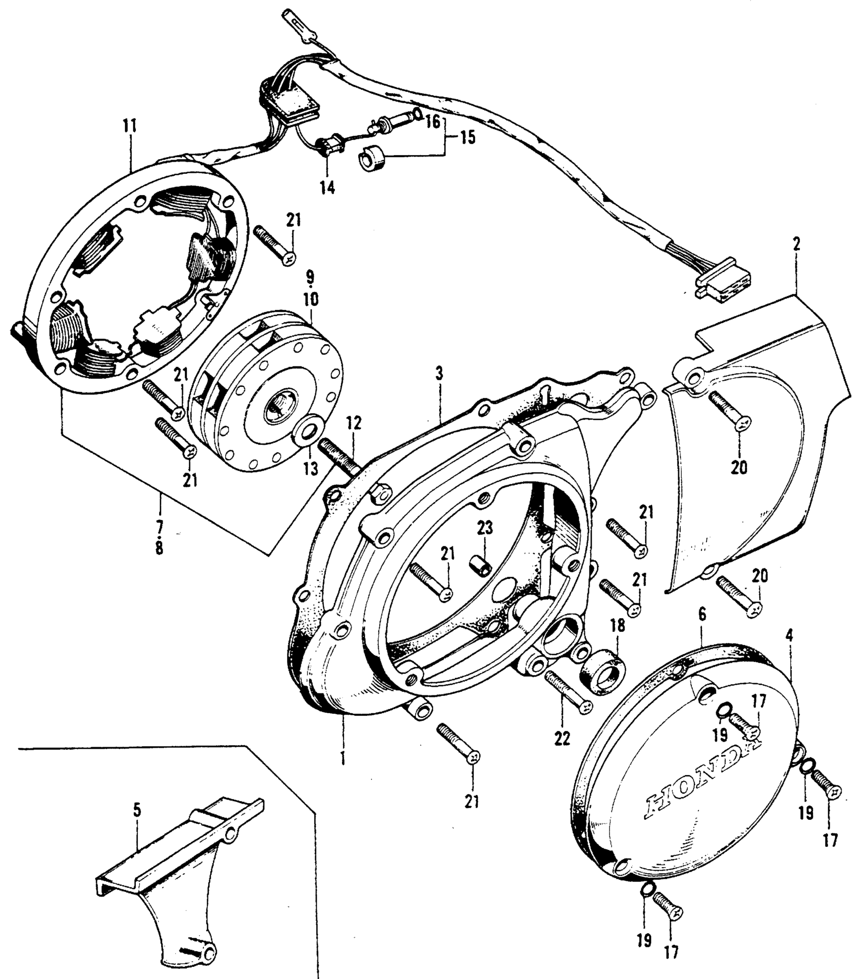 Honda S90A MOTORCYCLE, JPN, VIN# S90-111565 TO S90-142498 LEFT CRANKCASE COVER + ALTERNATOR Diagram