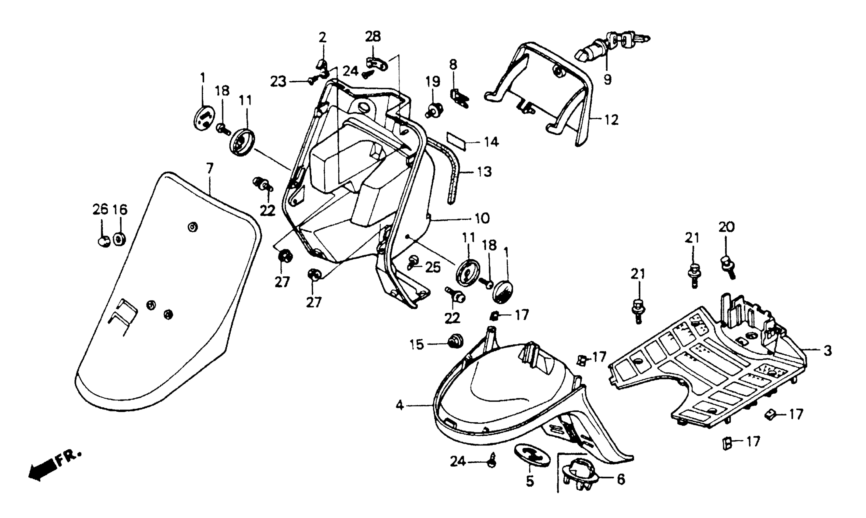Honda SA50A (93) ELITE 50 SR, MEX, VIN# 3H1AF160-PD400001 FRONT COVER Diagram