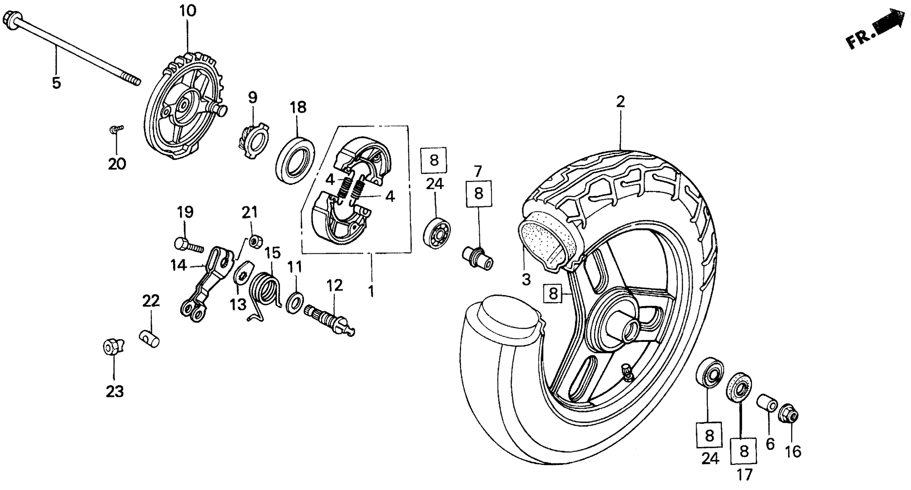 Honda SA50A (97) ELITE 50 SR, MEX, VIN# 3H1AF160-VD800001 FRONT WHEEL Diagram