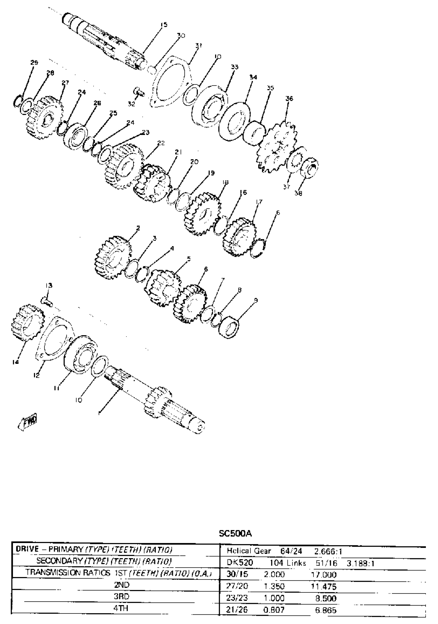 Yamaha SC500 (SC500) 1973 TRANSMISSION Diagram