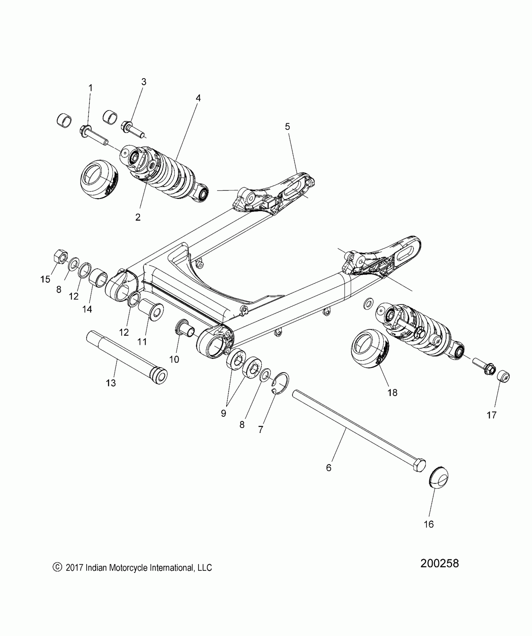 SUSPENSION, REAR ASM., SWING ARM AND SHOCKS - N22MSA00/MSB00 ALL OPTIONS (200208)