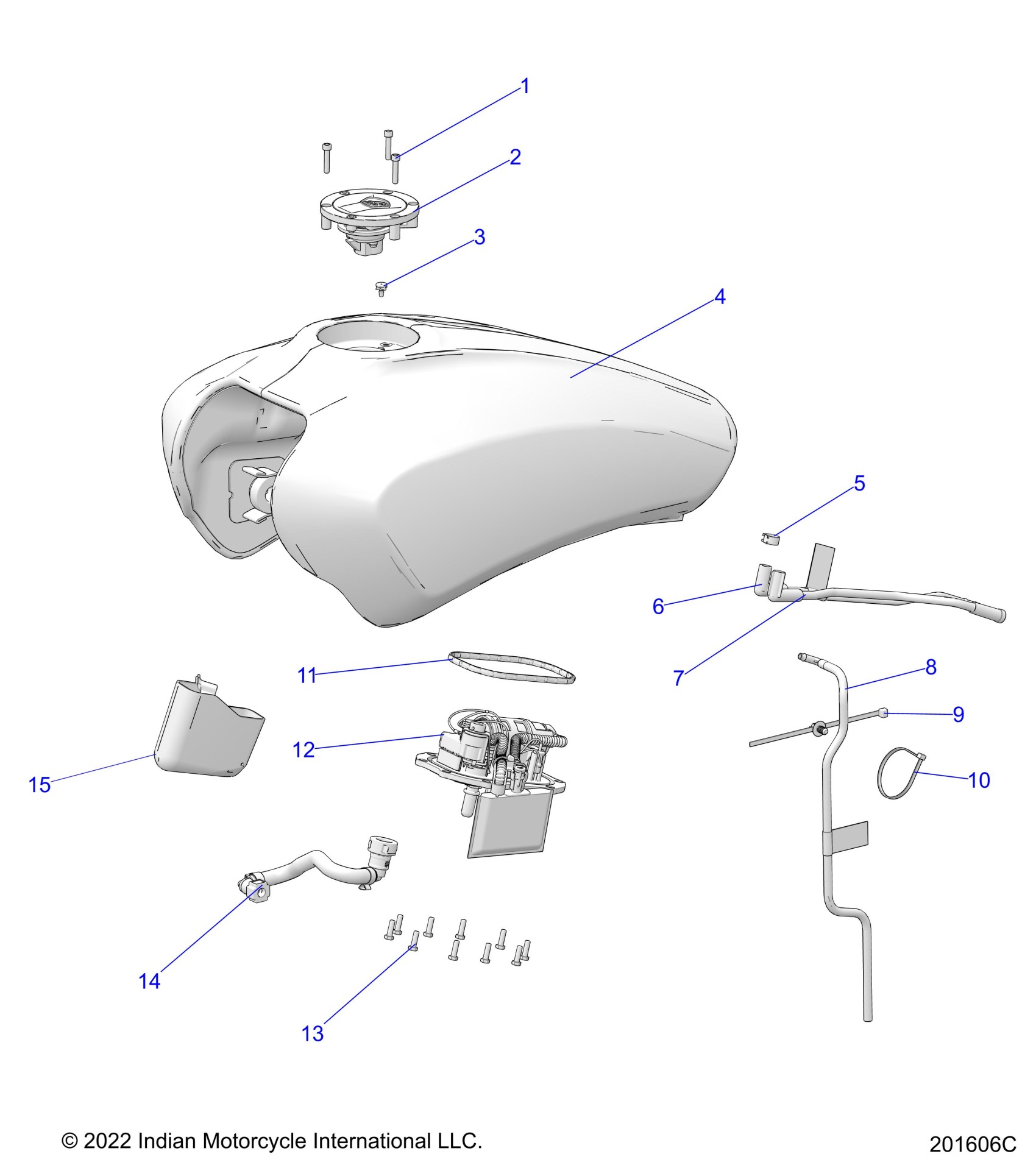 Polaris SCOUT BOBBER/BOBBER TWENTY ALL OPTIONS (R02) - N22MTA0011/6/A/D/H/U/A1/5/6/A/C/D/G/U/B1/5/6/A/C/D/G/U/C1/5/6/A/C/D/G/U/E1/5/6/A/C/D/G/H/U/P1/6/A/D/ FUEL SYSTEM, FUEL TANK ASM. - N22MTA00/MTB00/MTG00/MTH00 ALL OPTIONS (201606C) Diagram