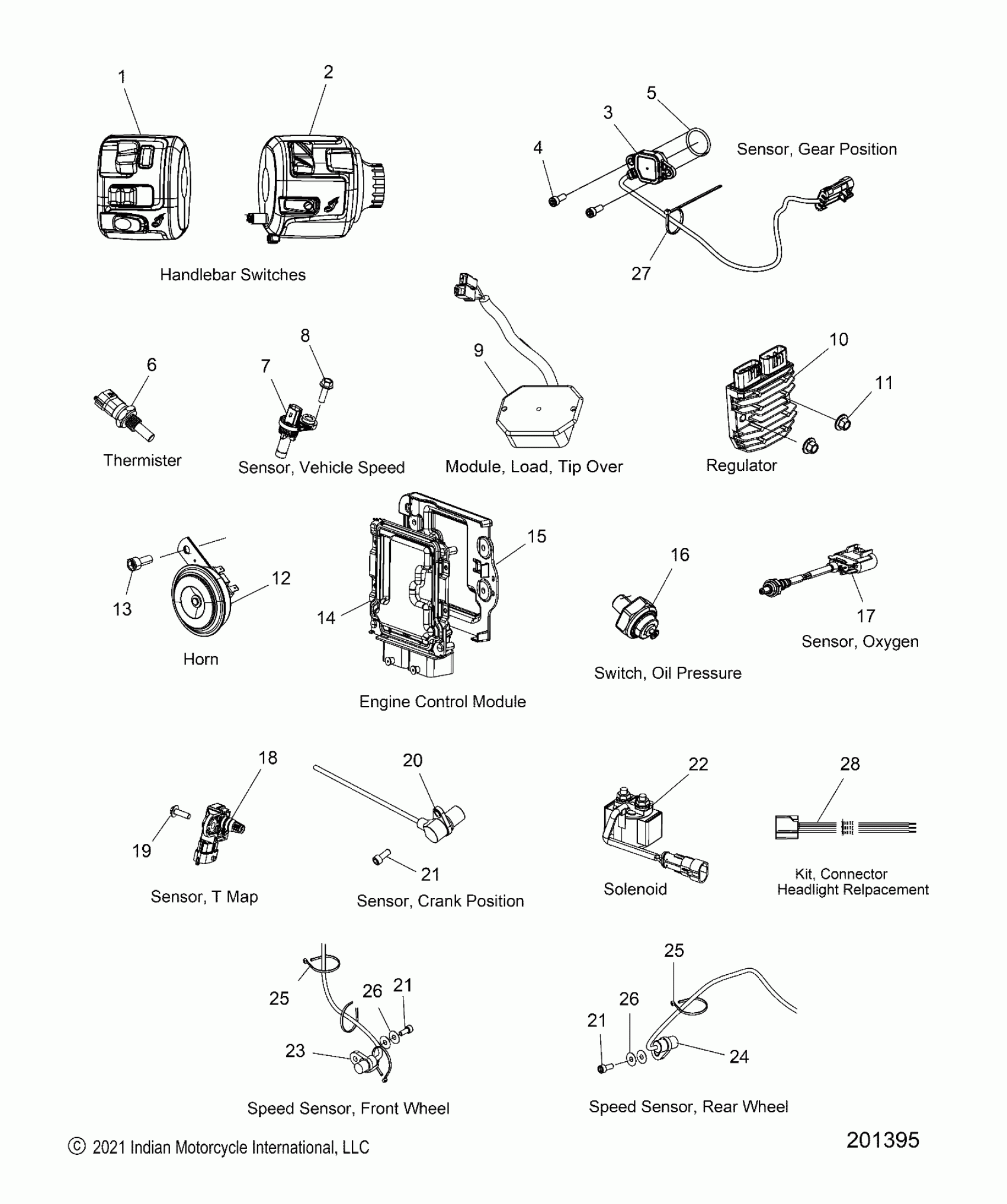 Polaris SCOUT BOBBER SIXTY ALL OPTIONS (R01) - N24MTA11AA/H/V/X/BA/H/V/X/CA/H/V/X/B11AA/BA/CA ELECTRICAL, COMPONENTS - N24MTA11/MTB11 ALL OPTIONS (201395) Diagram