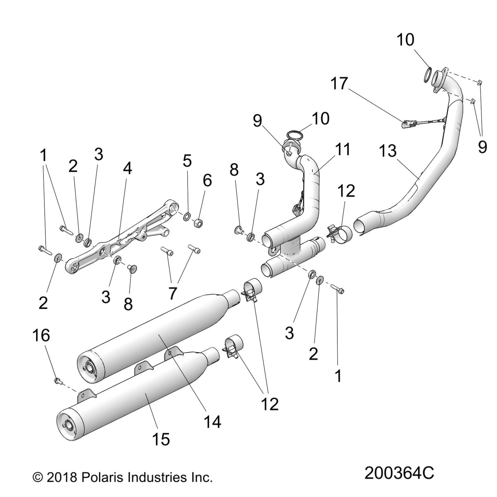 Polaris SCOUT SIXTY ALL OPTIONS (R03) - N21MSA11A3/A/B3/A/C3/A/E3/B11AA/BA/CA ENGINE, EXHAUST ASM. - N21MSA11/MSB11 ALL OPTIONS (200364C) Diagram