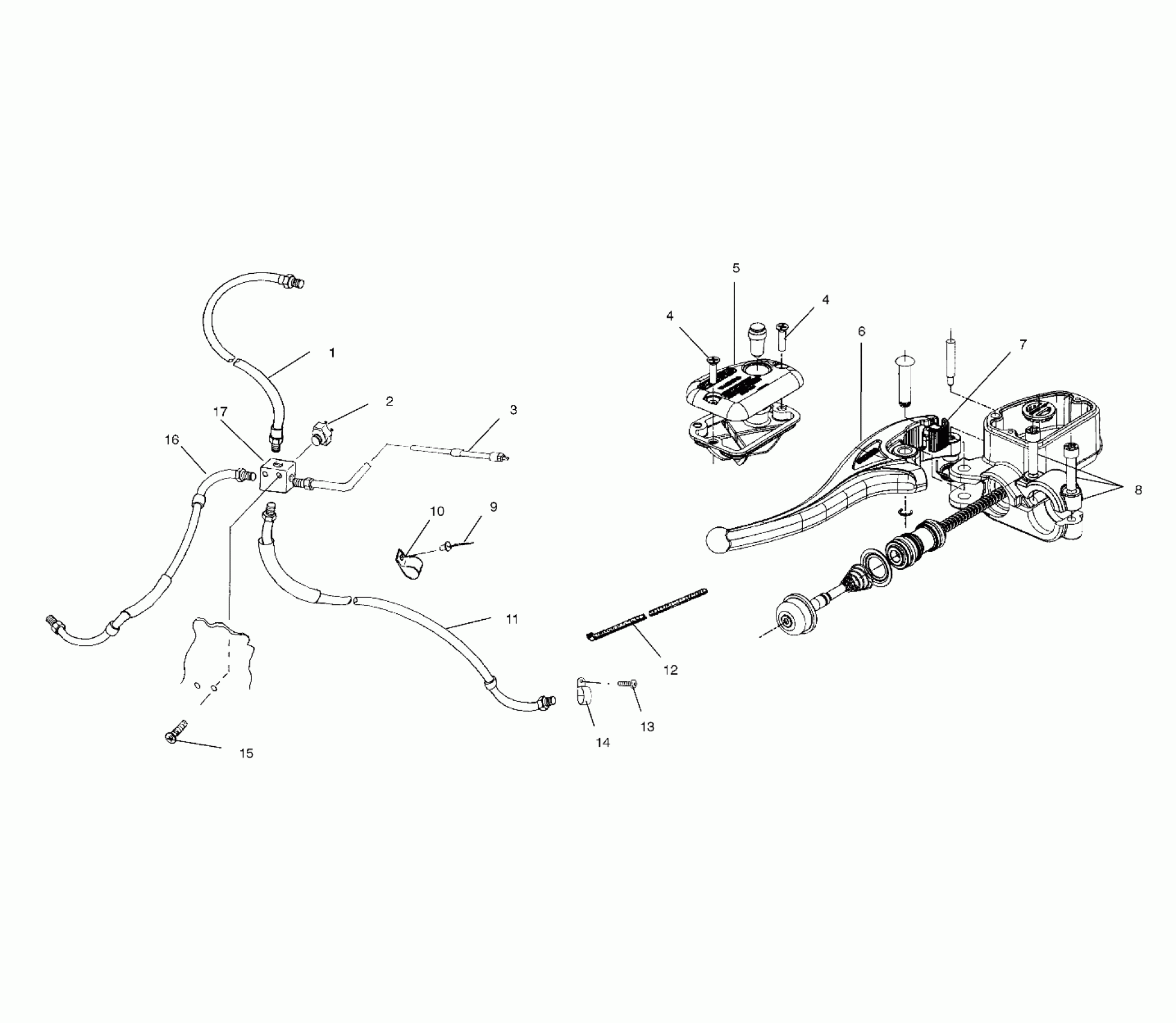 Polaris SCRAMBLER 400 2X4 - A01BA38CA CONTROLS - MASTER CYLINDER/BRAKE LINE - A01BA38CA (4968366836B007) Diagram
