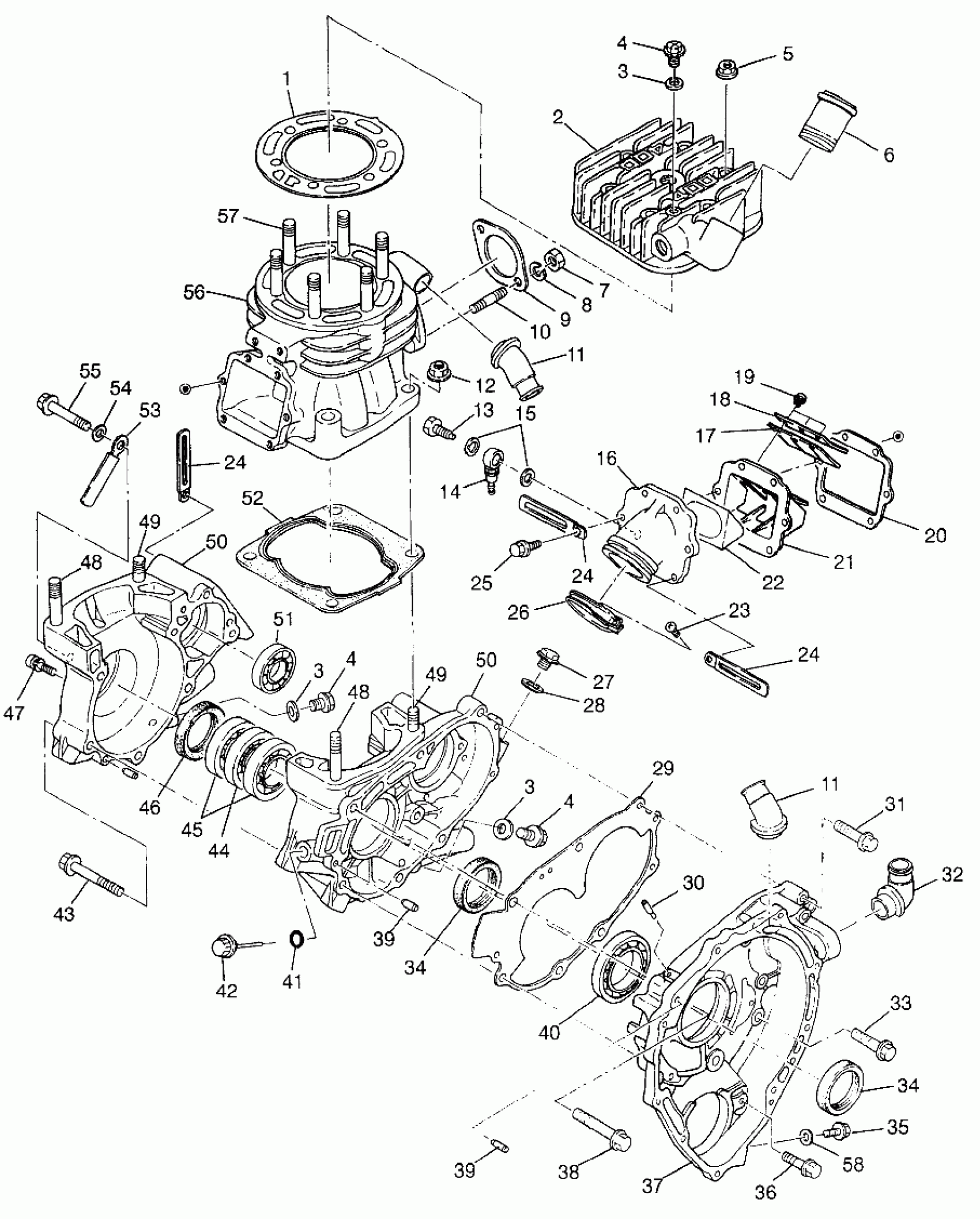 CRANKCASE ASM. Substituted by 3086740 (See Footnote) (Incl. 3,4,34,36,39,43-46,48-51,55)