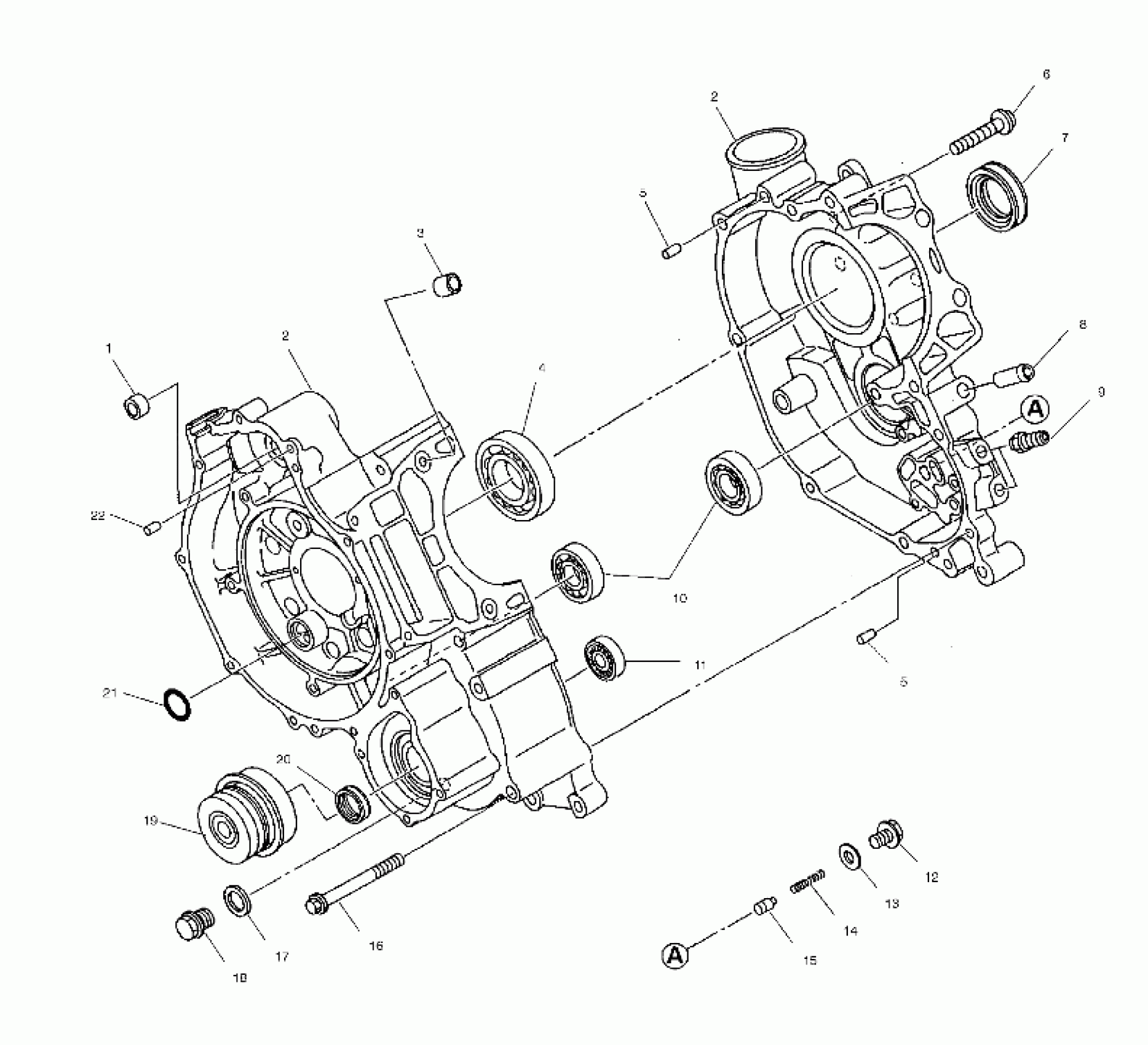 Polaris SCRAMBLER 500 2X4 - A02BA50AA CRANKCASE - A02BA50AA/AB (4969976997C13) Diagram
