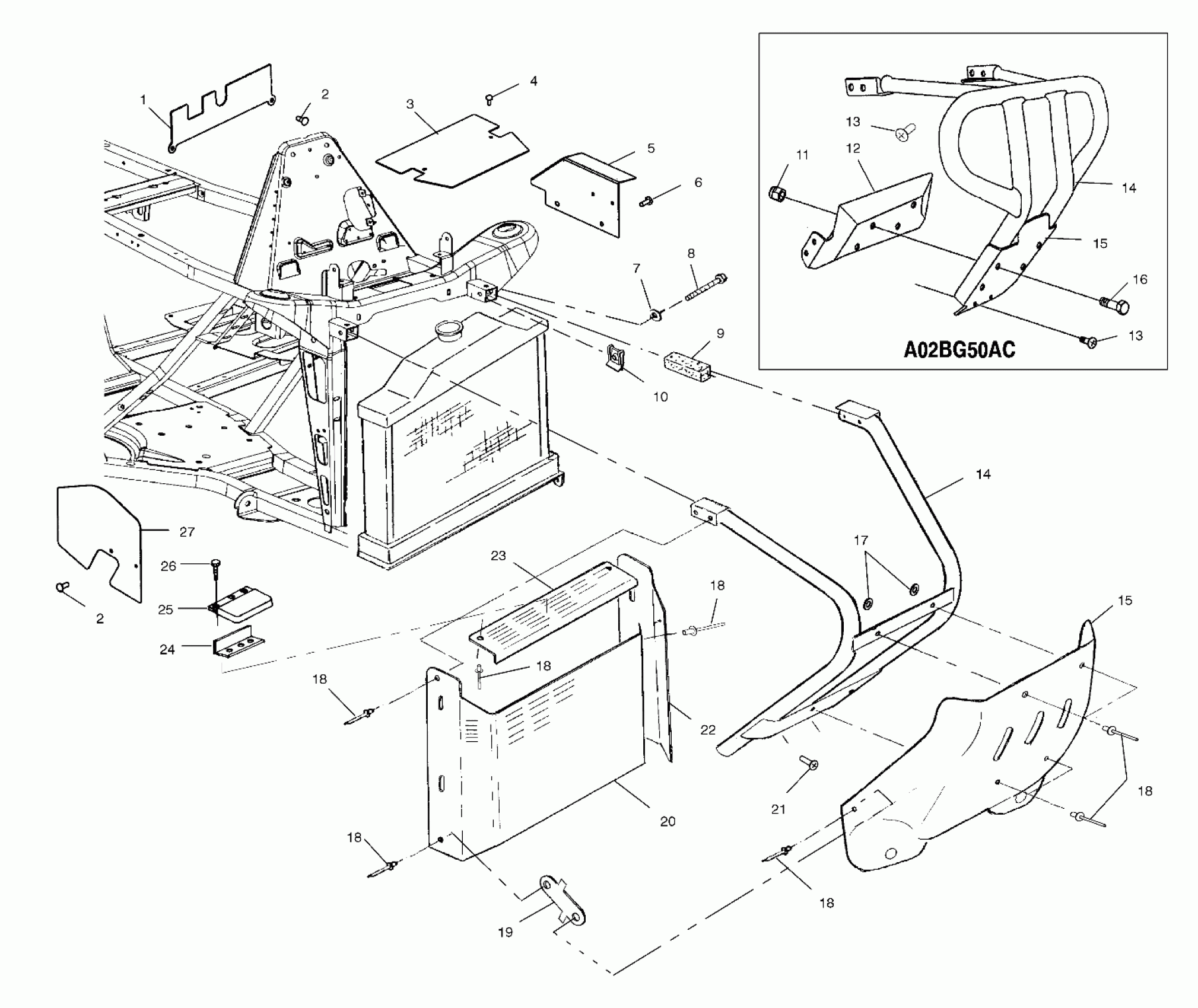 Polaris SCRAMBLER 500 4X4 - A02BG50AA FRONT BUMPER AND SHIELDS - A02BG50AA/AC (4970027002A05) Diagram