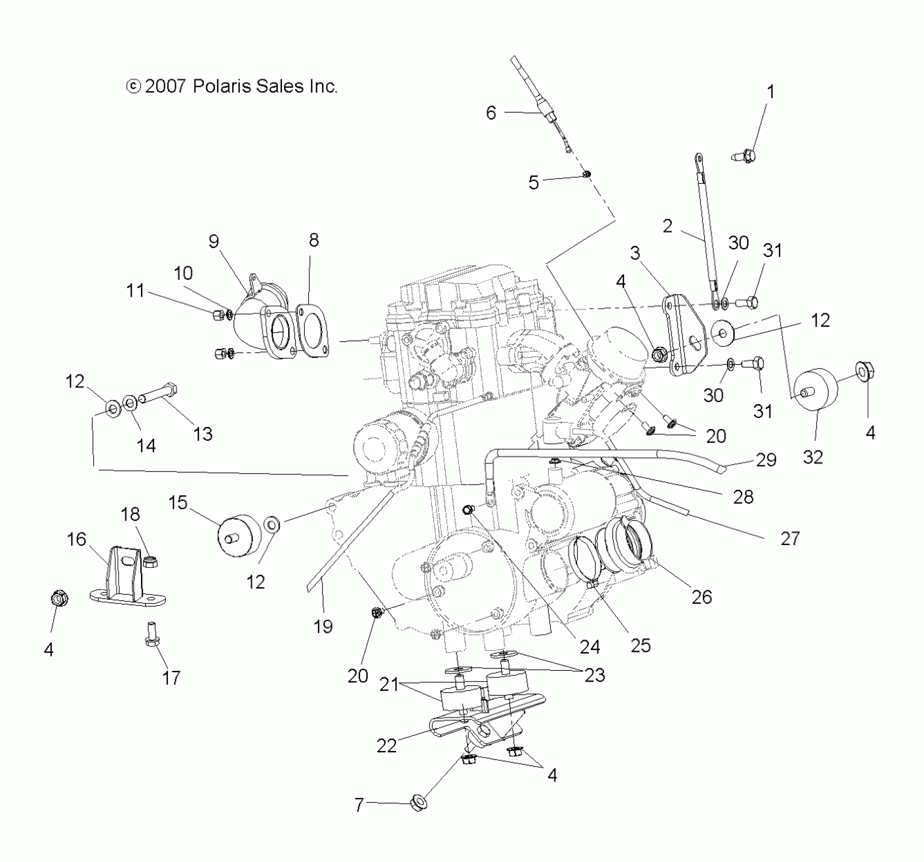 Polaris SCRAMBLER 500 4X4 - A08BG50AA ENGINE, MOUNTING - A08BG50AA (49ATVENGINEMTG08SCRAM) Diagram