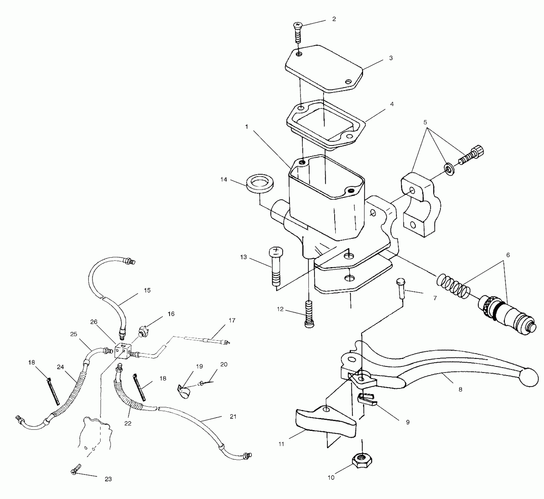 Polaris SCRAMBLER 500 - A99BG50AA CONTROLS - MASTER CYLINDER/BRAKE LINE - A99BG50AA (4949714971b012) Diagram