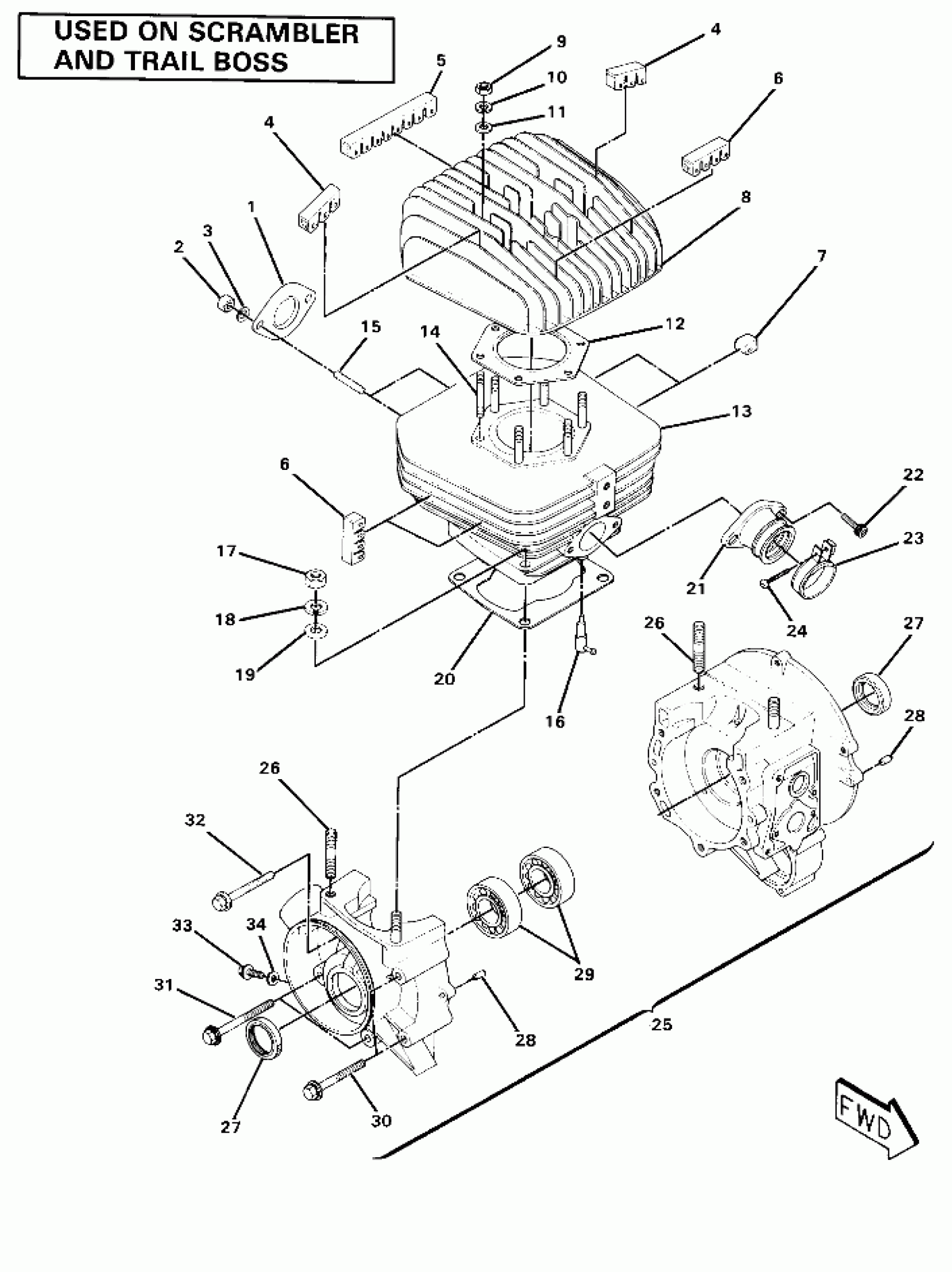 Polaris SCRAMBLER - W857027 Crankcase and Cylinder Assembly (4910981098042A) Diagram