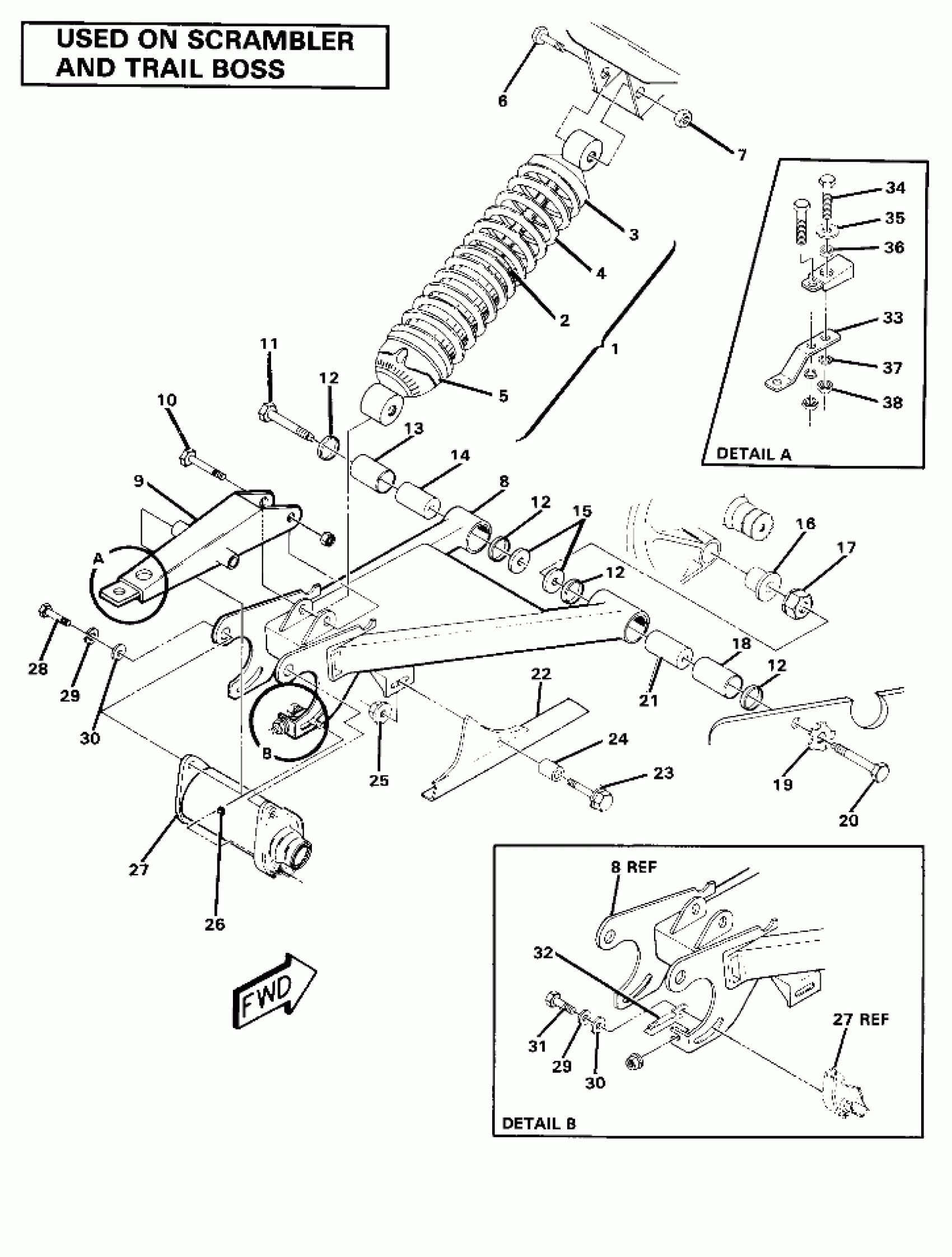 Polaris SCRAMBLER - W857027 Swing Arm Weldment and Rear Shock Assembly (4910981098032A) Diagram