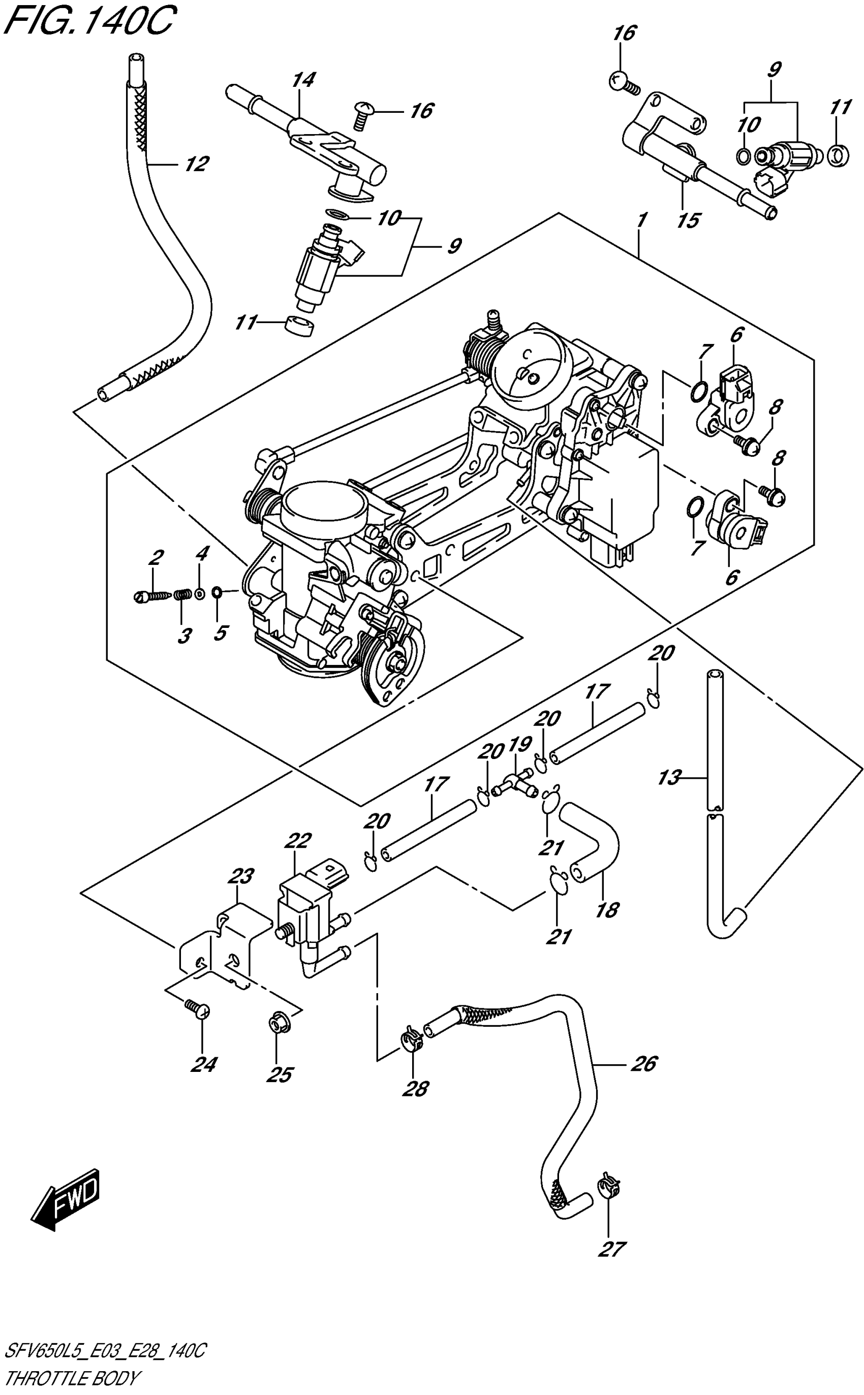 Suzuki SFV650AL5 (2015) THROTTLE BODY (SFV650L5 E33) Diagram