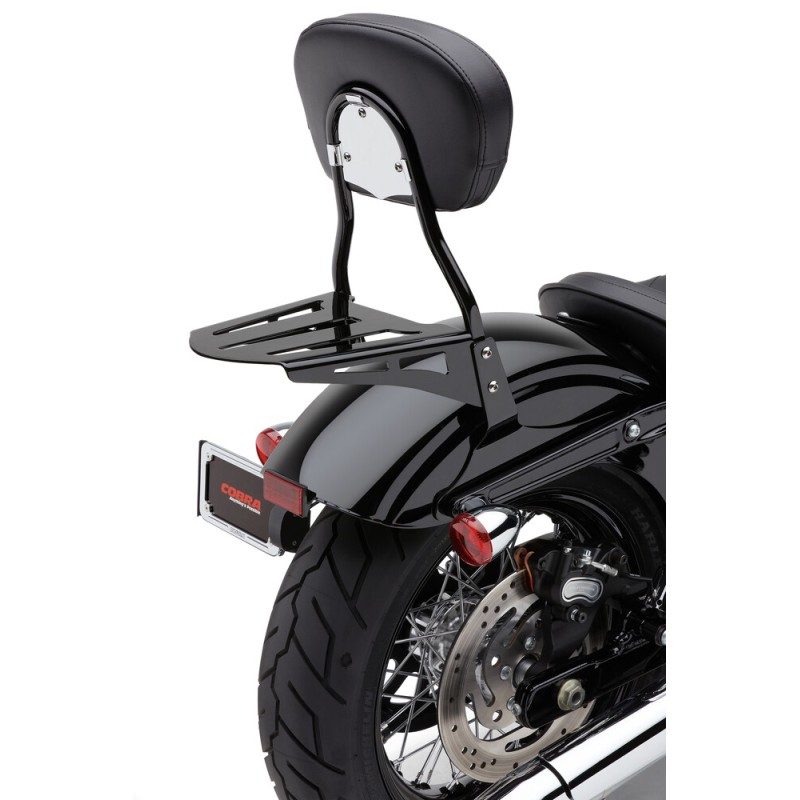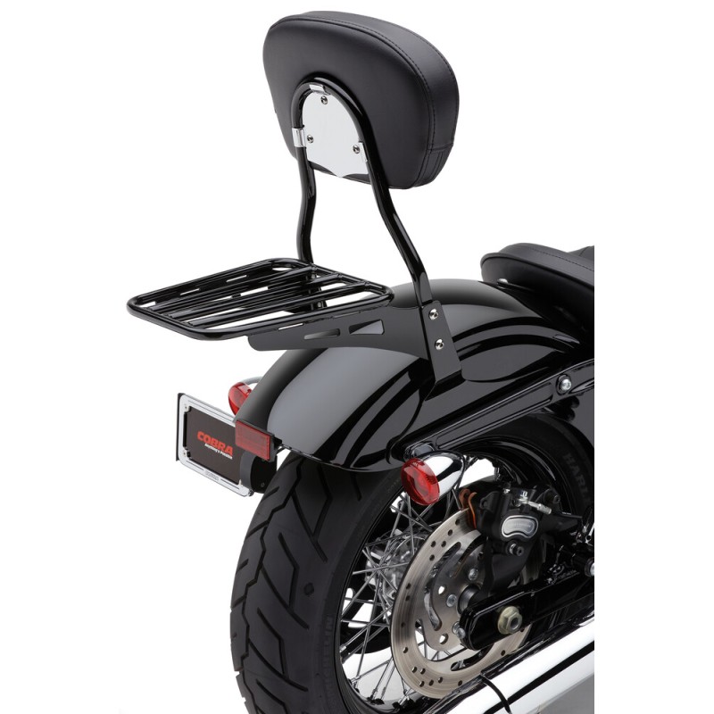 - Bolt-on a strong and good-looking luggage rack to your existing Cobra Sissy Bar.