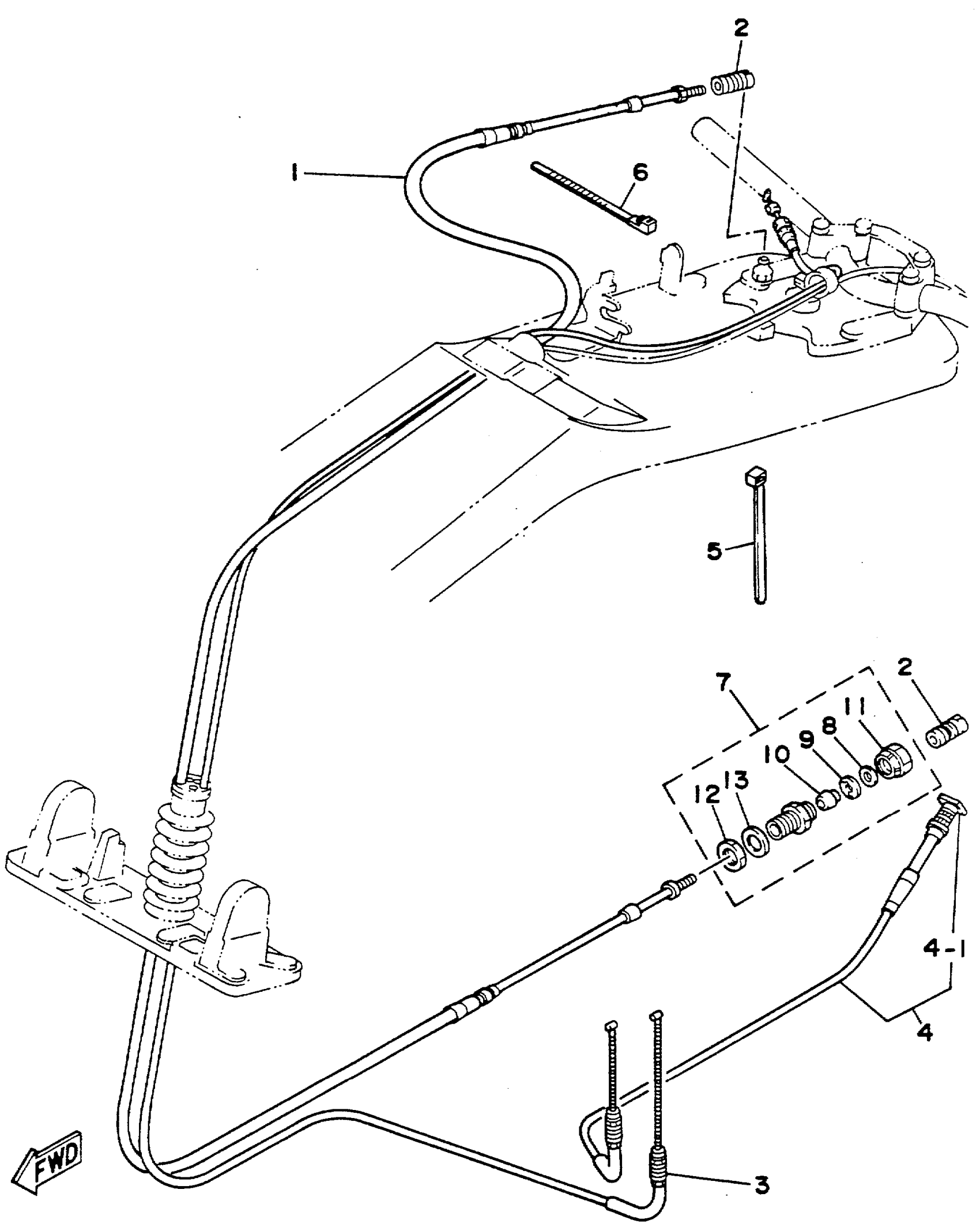 Yamaha SJ650R (SUPER JET) 1993 CONTROL CABLE Diagram
