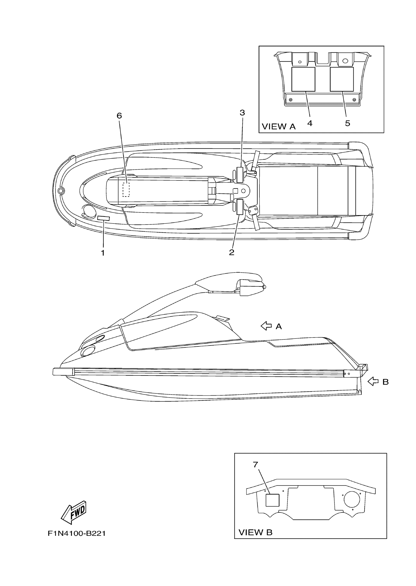 Yamaha SJ700BE (SuperJet) F1ND 2006 IMPORTANT LABELS Diagram